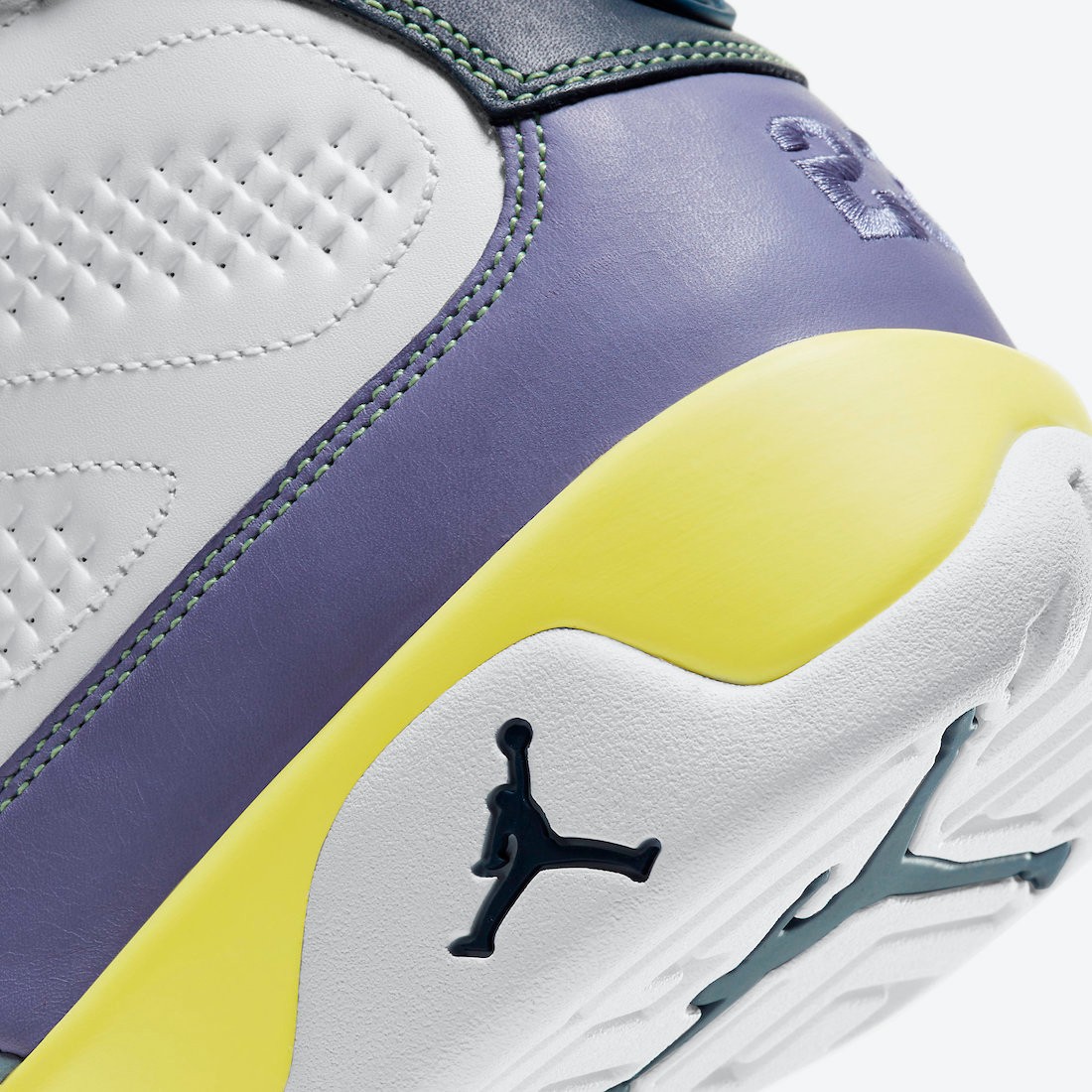 整双鞋采用鸳鸯设计,简洁的纯白鞋面辅以多种色彩拼接提升辨识,打破了 Air Jordan 9 的传统风格,为硬朗的造型加入超强活力。