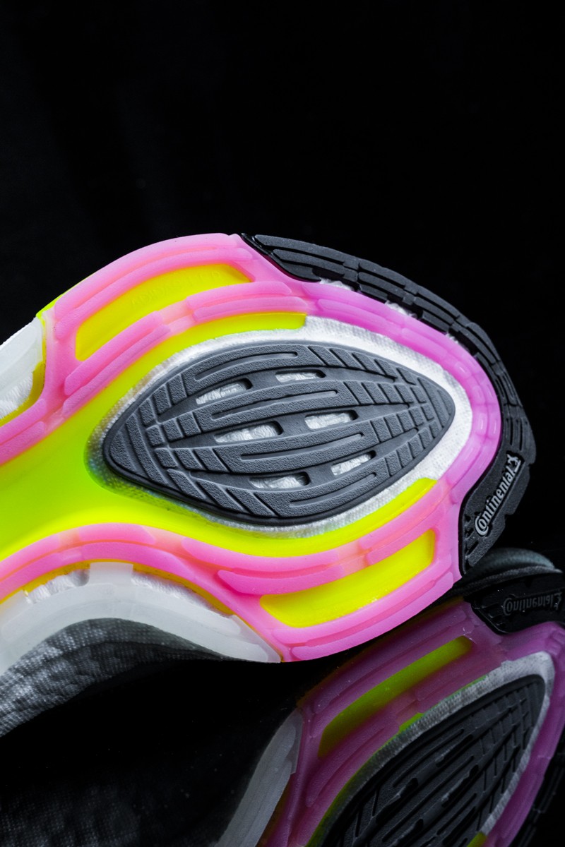 而这次改进 Boost 自然是核心,后跟处 Boost 相较以往鞋款有了肉眼可见的增幅,让整个鞋身都处于强烈的前倾造型,带来很强的速度感。