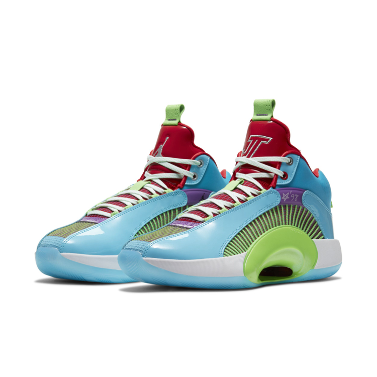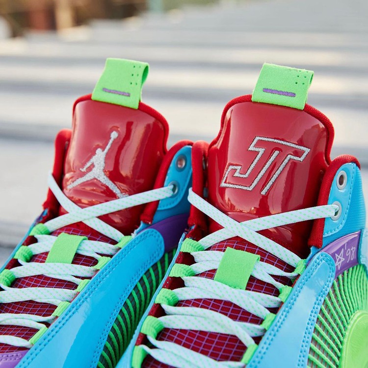 近日就有一款塔图姆 Air Jordan 35 PE 版本曝光,配色相当花里胡哨。