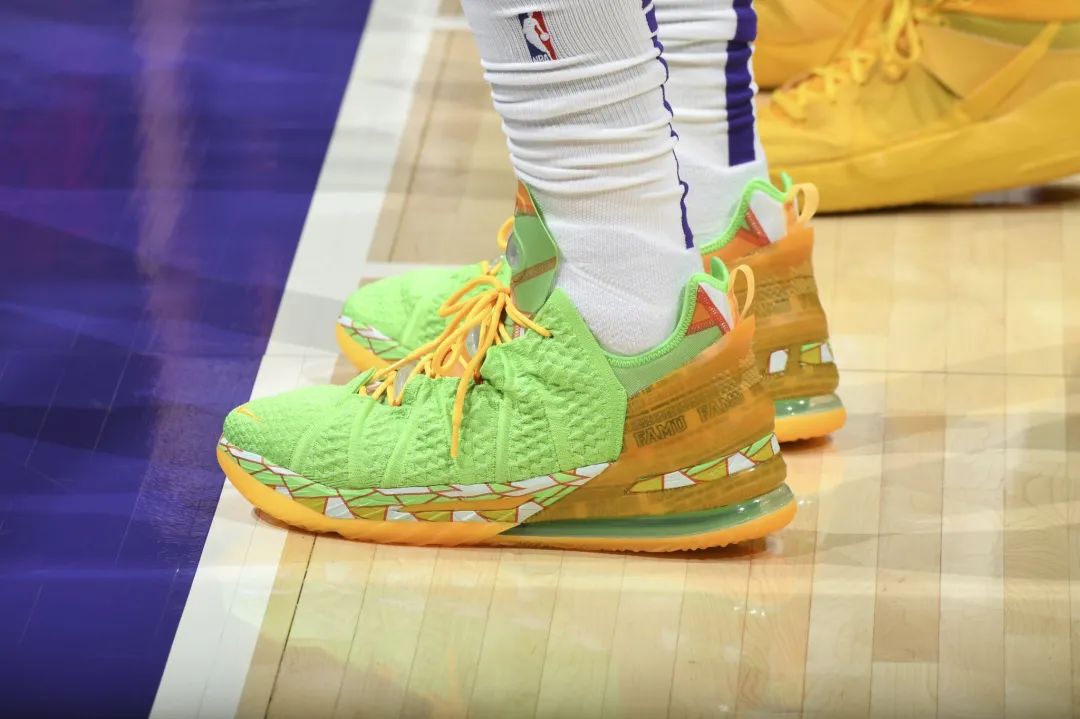 詹姆斯最新签名鞋 LeBron 18 迎来一款全新配色亮相! 近日,詹皇已经将其带到赛场之上亲自上脚。 鞋身整体以淡绿色为主,鞋带、后跟及外底处选用黄色进行点缀。 中底加入了白色、黄色、绿色拼接色块图案设计,后跟黄色半透明包裹下可见 “FAMU” 字样。 整体配色颇为清爽,据悉是向佛罗里达农工大学致敬的 PE 配色,FAMU 正是这所大学的名称缩写。 Pic Via:brkicks