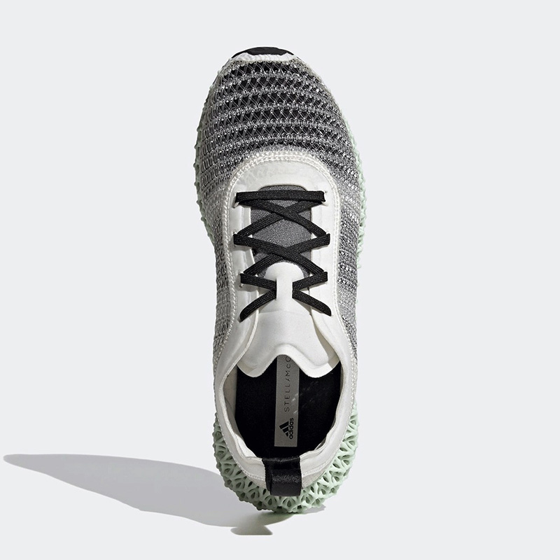 后跟鞋提呈现 Stella McCartney 的文字标识与 adidas Logo,彰显专属身份。