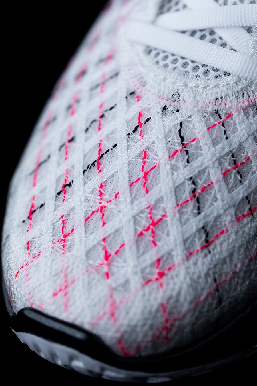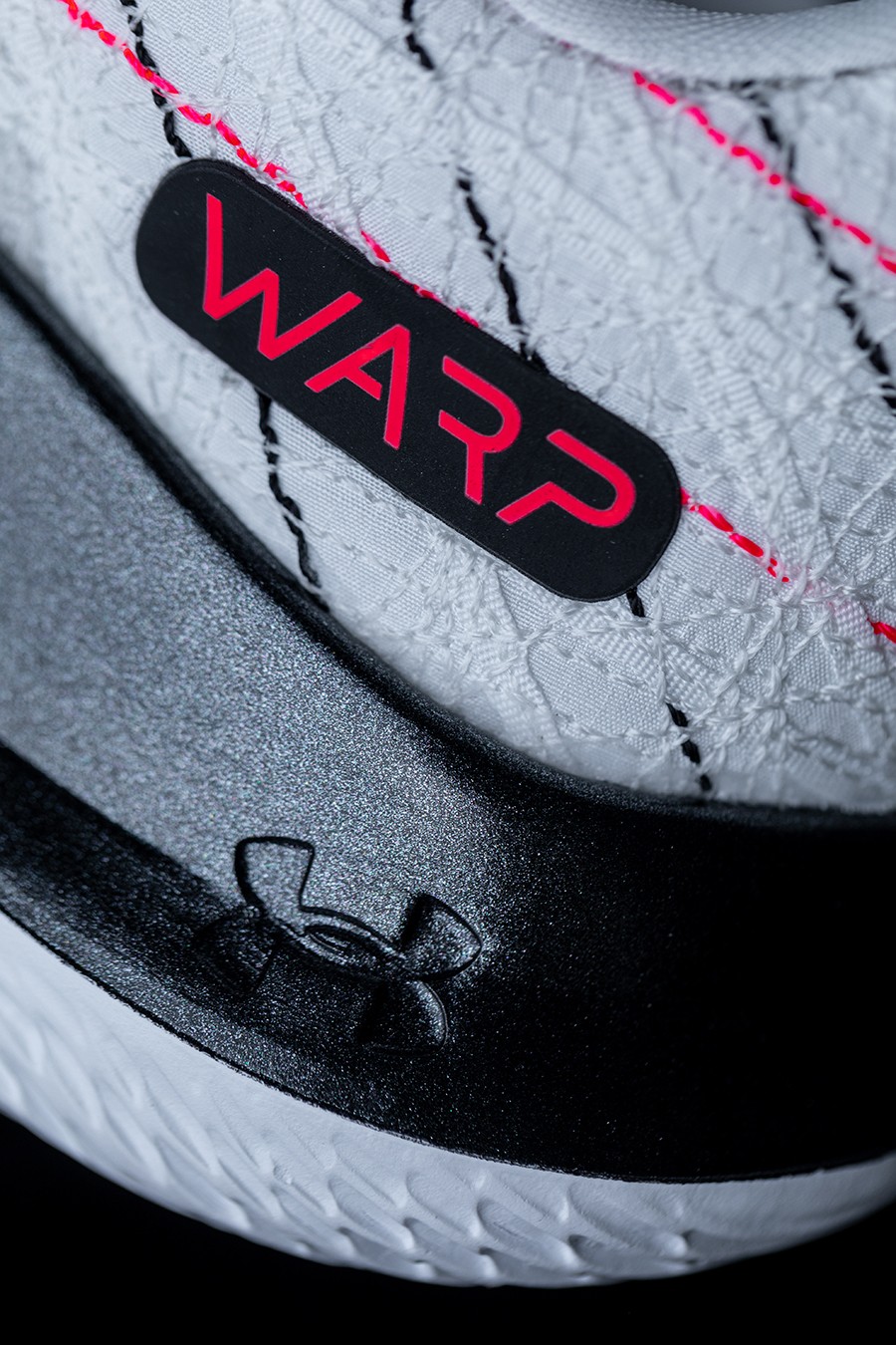 鞋面部分采用创新 UA Warp 科技构建,远看简洁,细节却极为复杂。精密的编织纹理犹如羽毛般轻盈,让你穿上后毫无负重感。