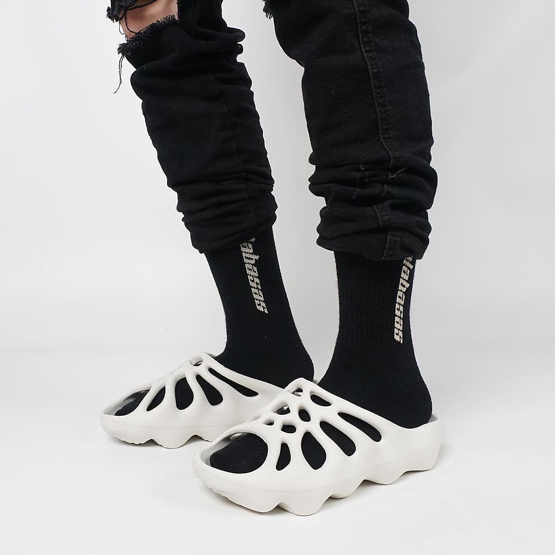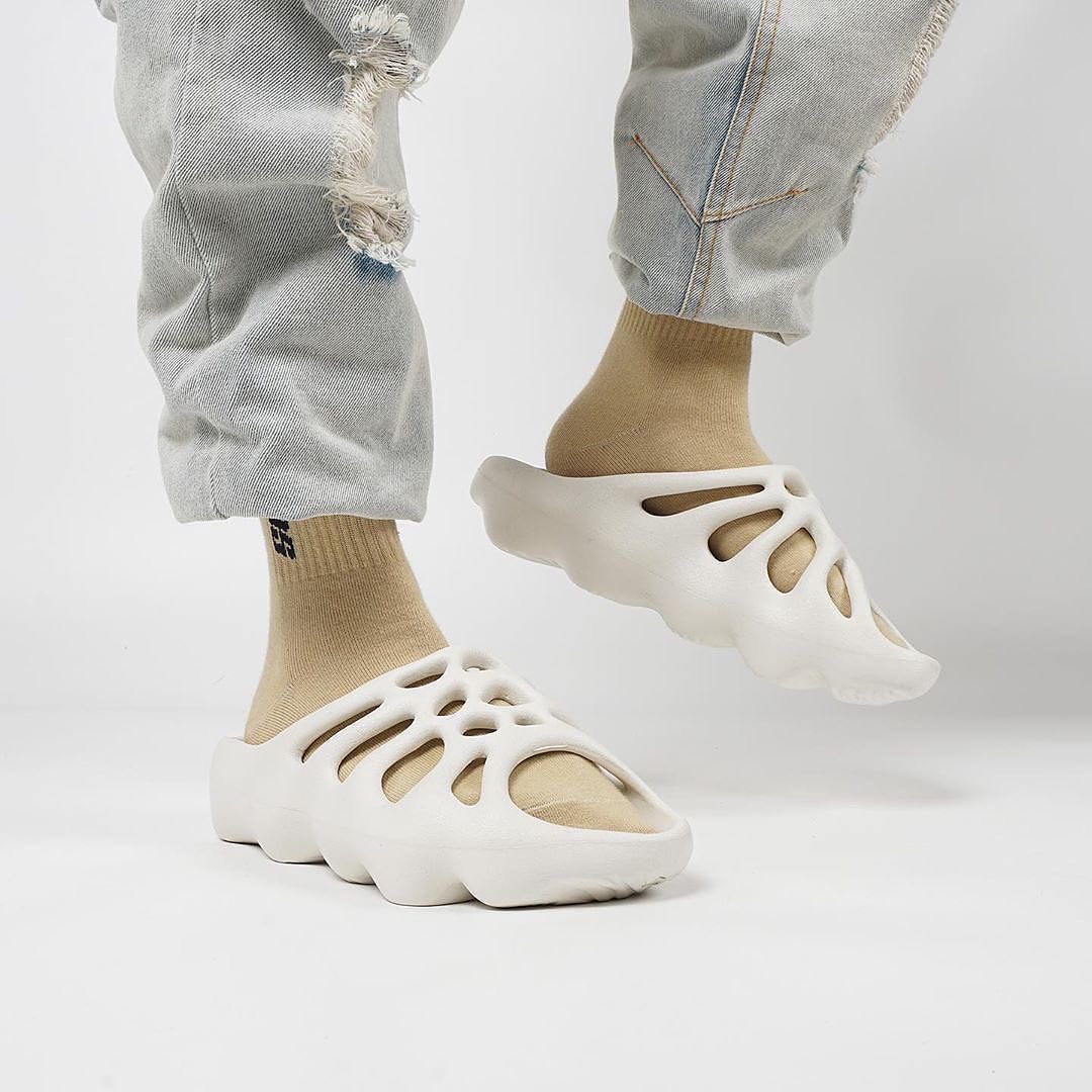 其实 Yeezy 450 还有其他版本,早在去年就有拖鞋版本 Yeezy 450 Slide 曝出实物,卡戴珊本人还晒过上脚照,近日又有全新上脚照。