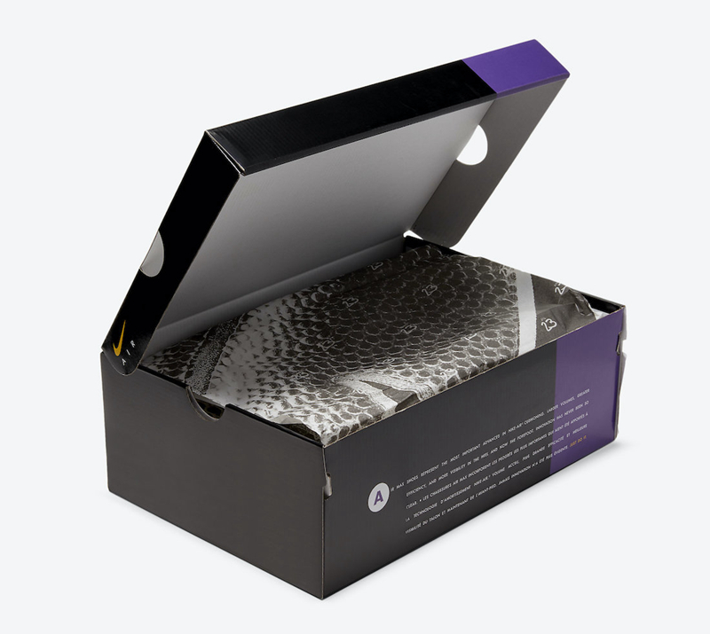 鞋盒一改往日的传统设计,而是换成紫金的湖人配色。