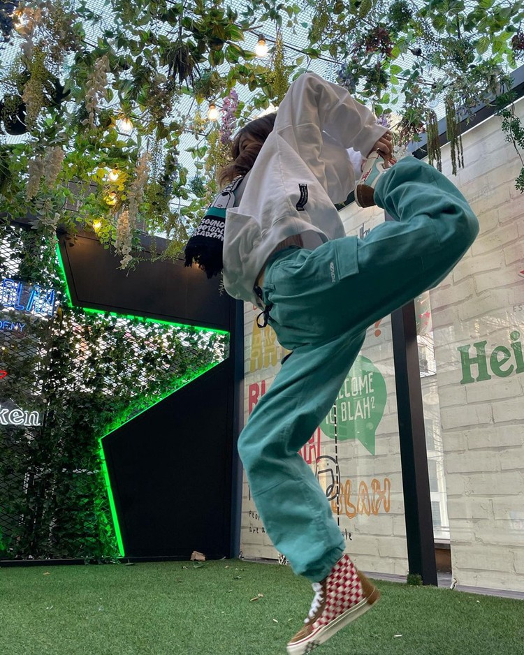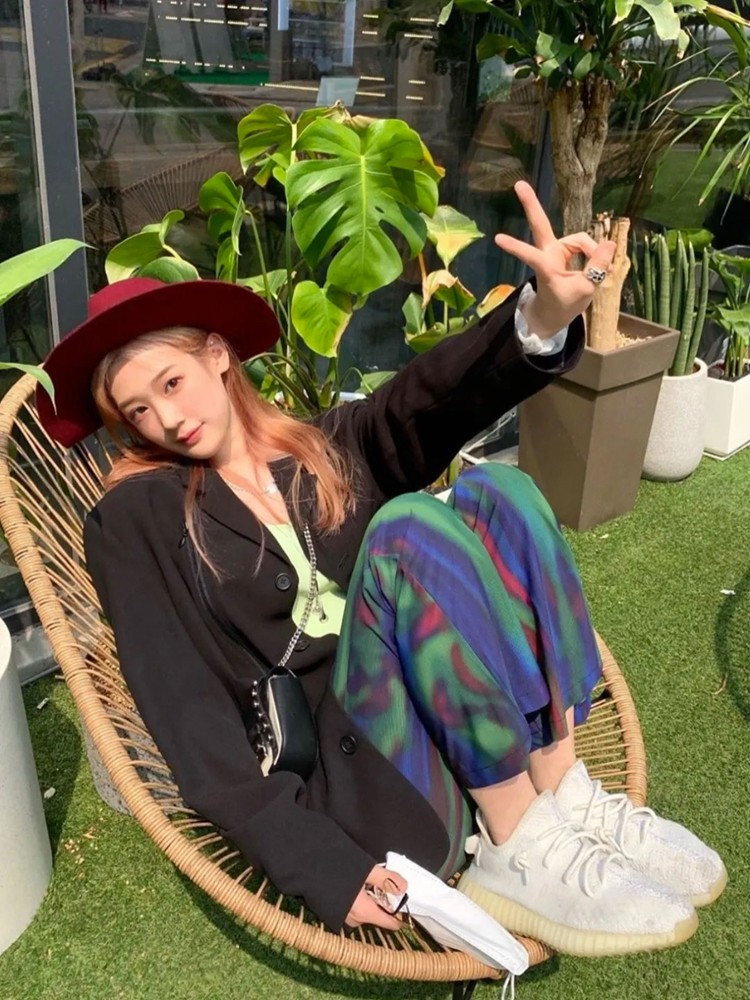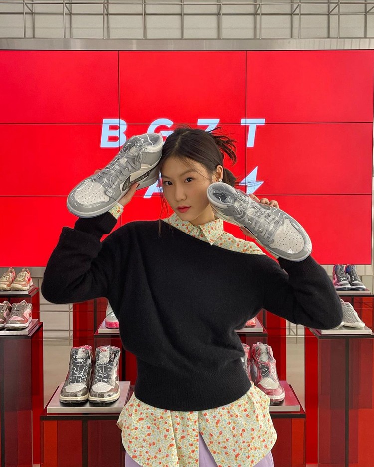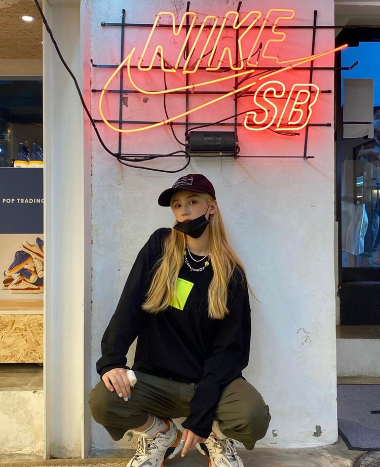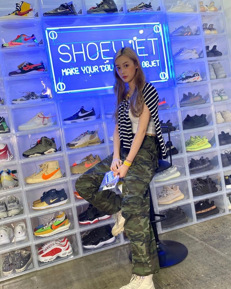 除了温柔甜美以外,柳瑞妍也有着街头酷 Girl 的一面,各种球鞋上脚数不过来。