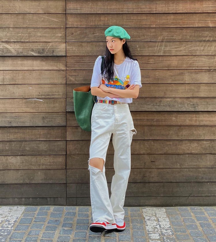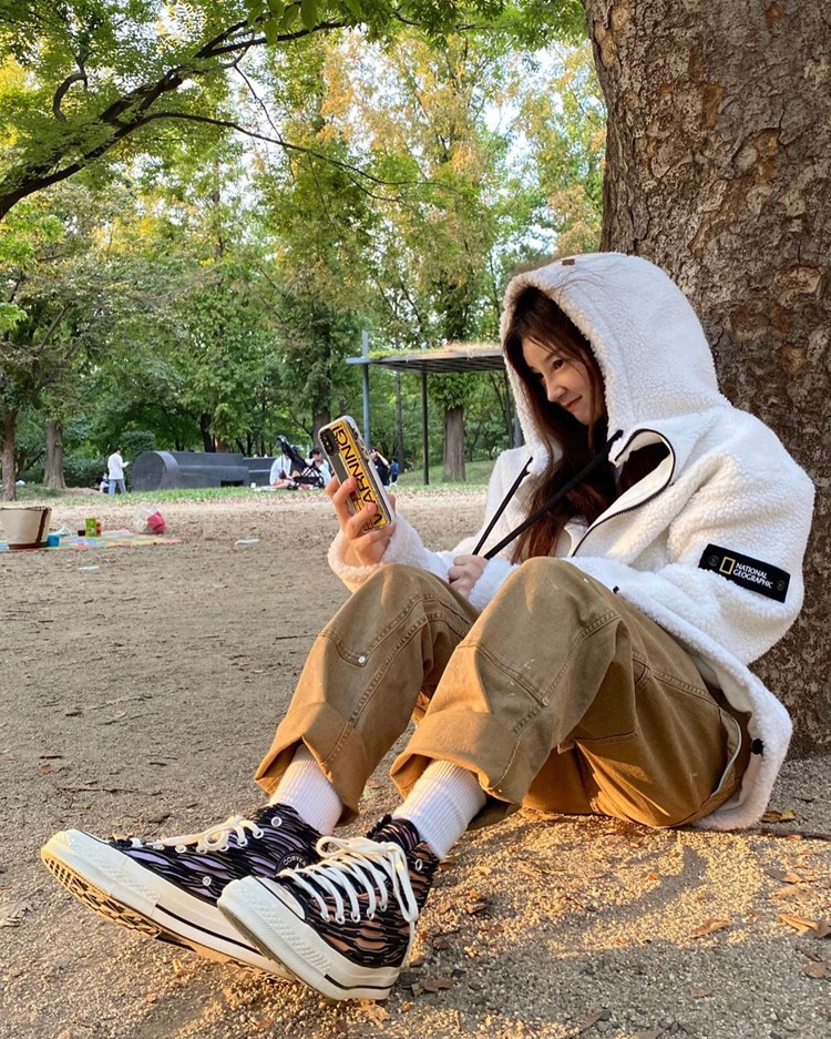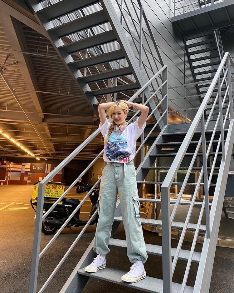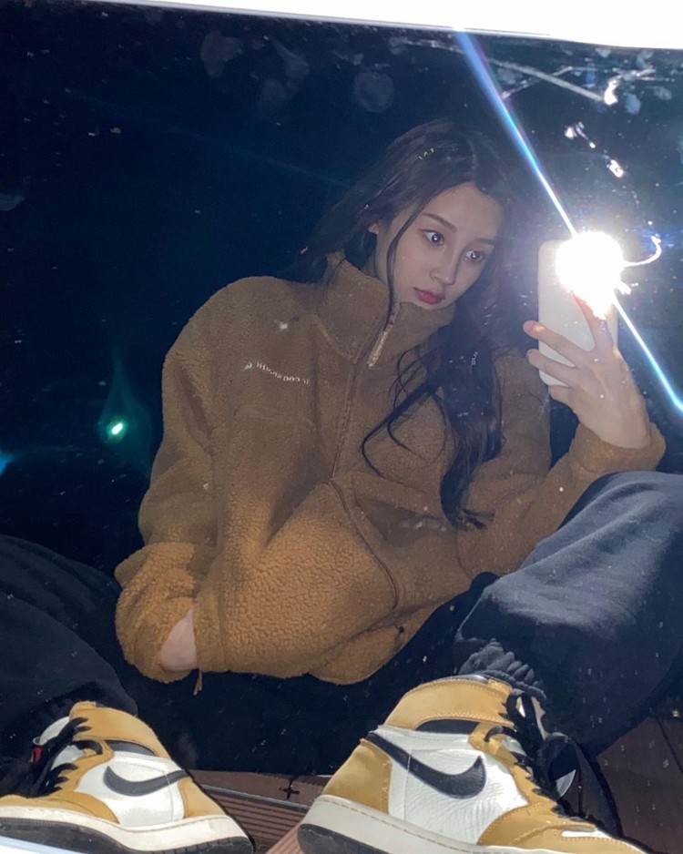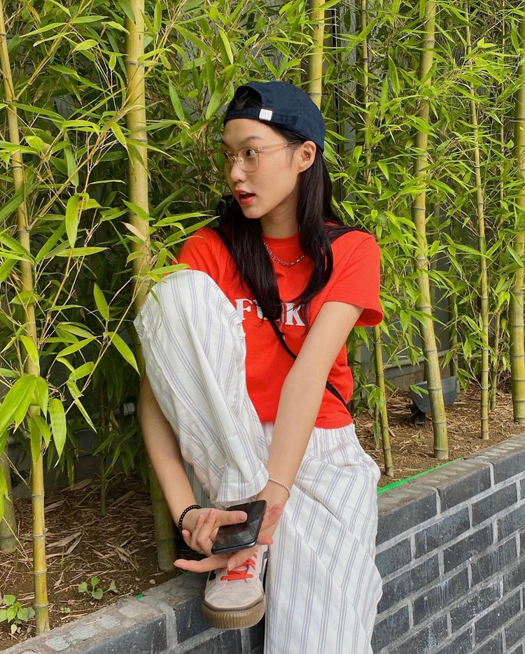 除了温柔甜美以外,柳瑞妍也有着街头酷 Girl 的一面,各种球鞋上脚数不过来。