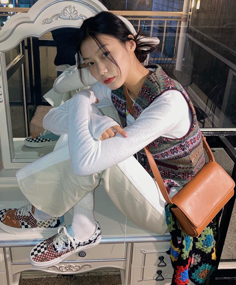 不同于当下大多数女生的选择,郑厦荣独爱 Vans 系列鞋款,经常可以在个人 po 照中看见她上脚各种 Vans。