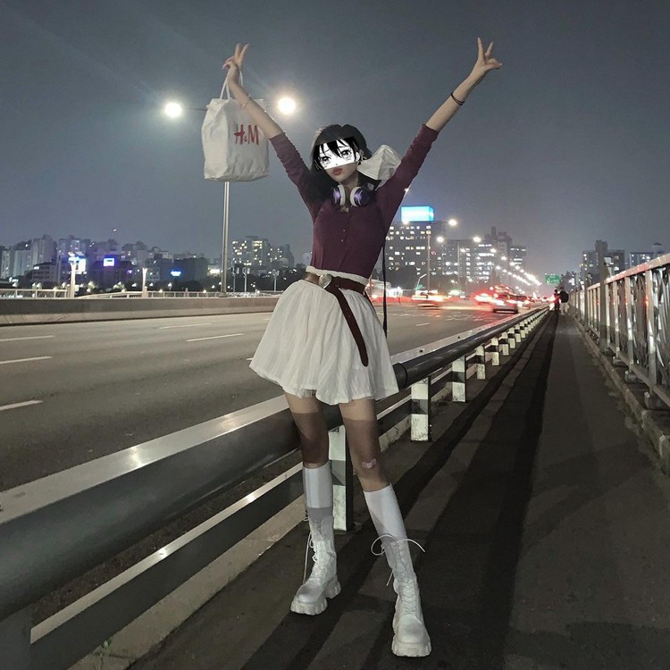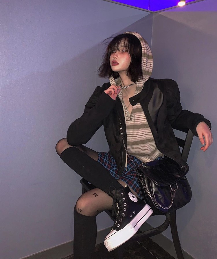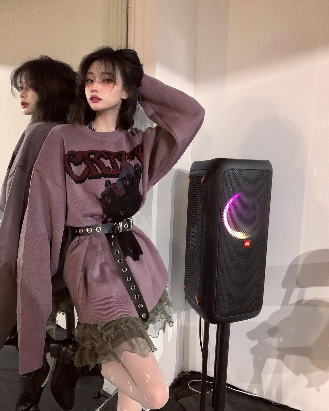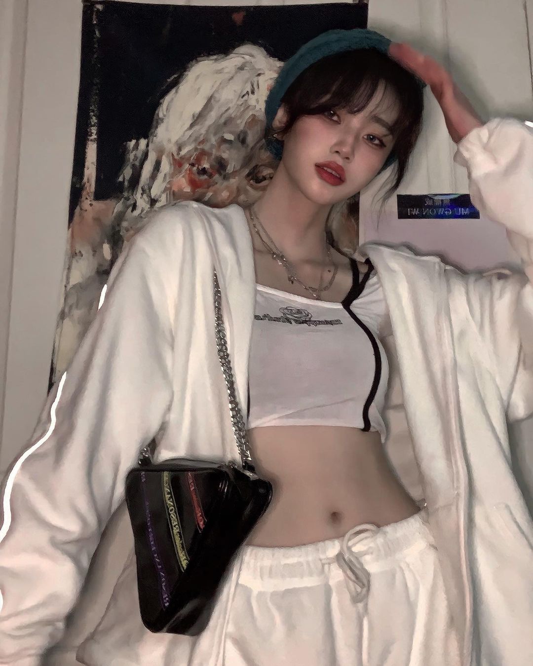 第二位是同样 20 强的柳瑞妍,区别于上一位 Rachel 的暗黑风搭配,这位小姐姐的私下穿衣风格更加甜美。