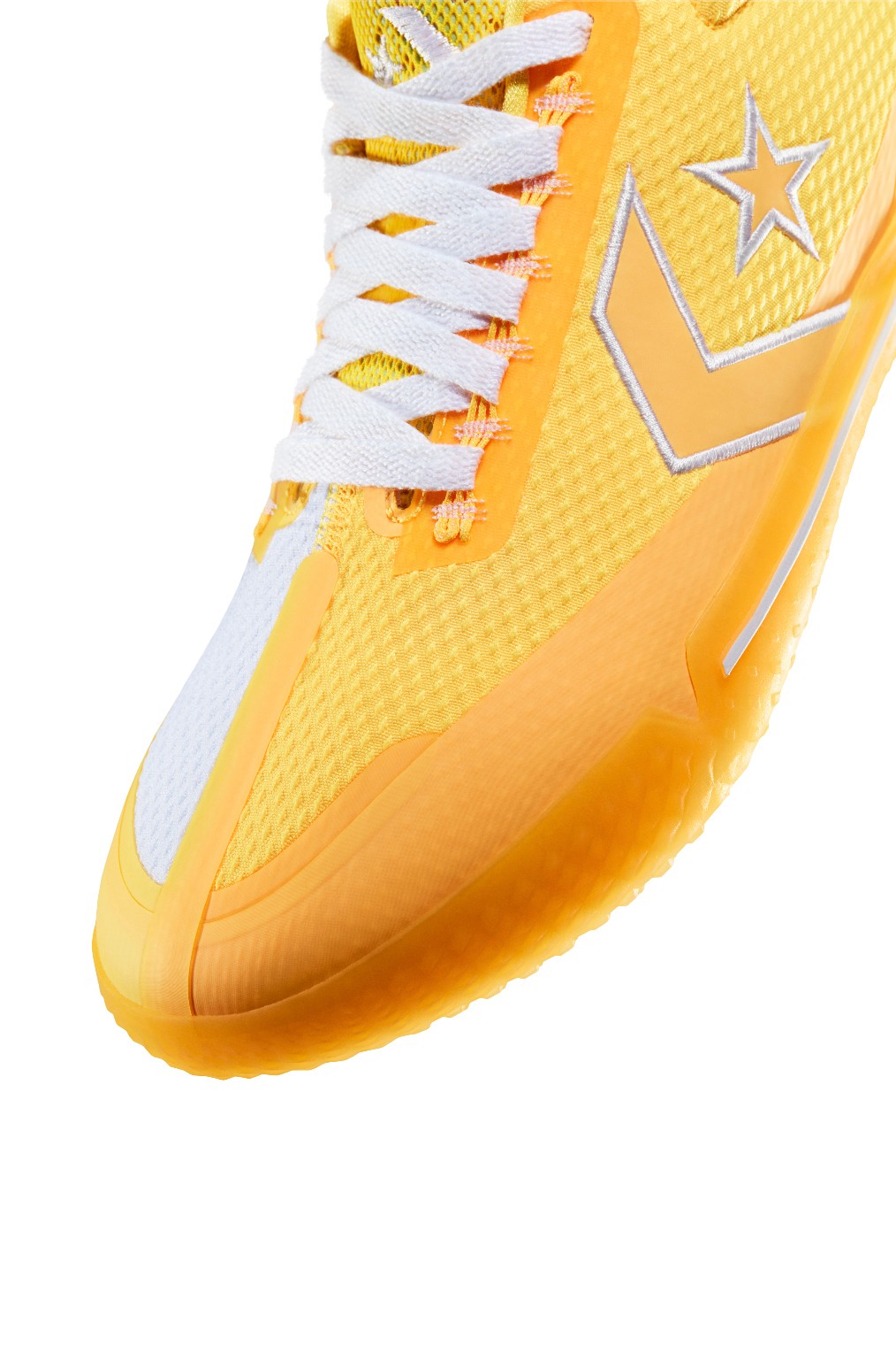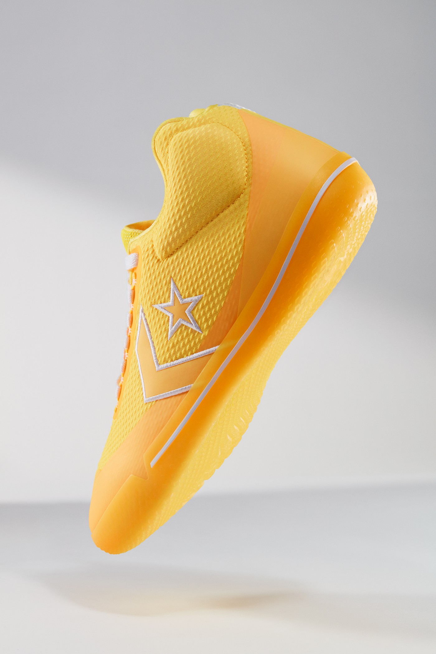 该系列的另一双鞋款 All Star BB EVO “Hometown” 鞋面采用白色和银杏黄,打造不对称颜色设计。