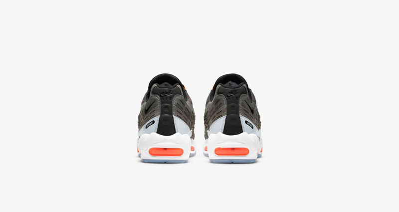 Air Max 95 渐变的鞋身层次得以保留,搭配透明材质打造,并辅以黑色线条点缀。