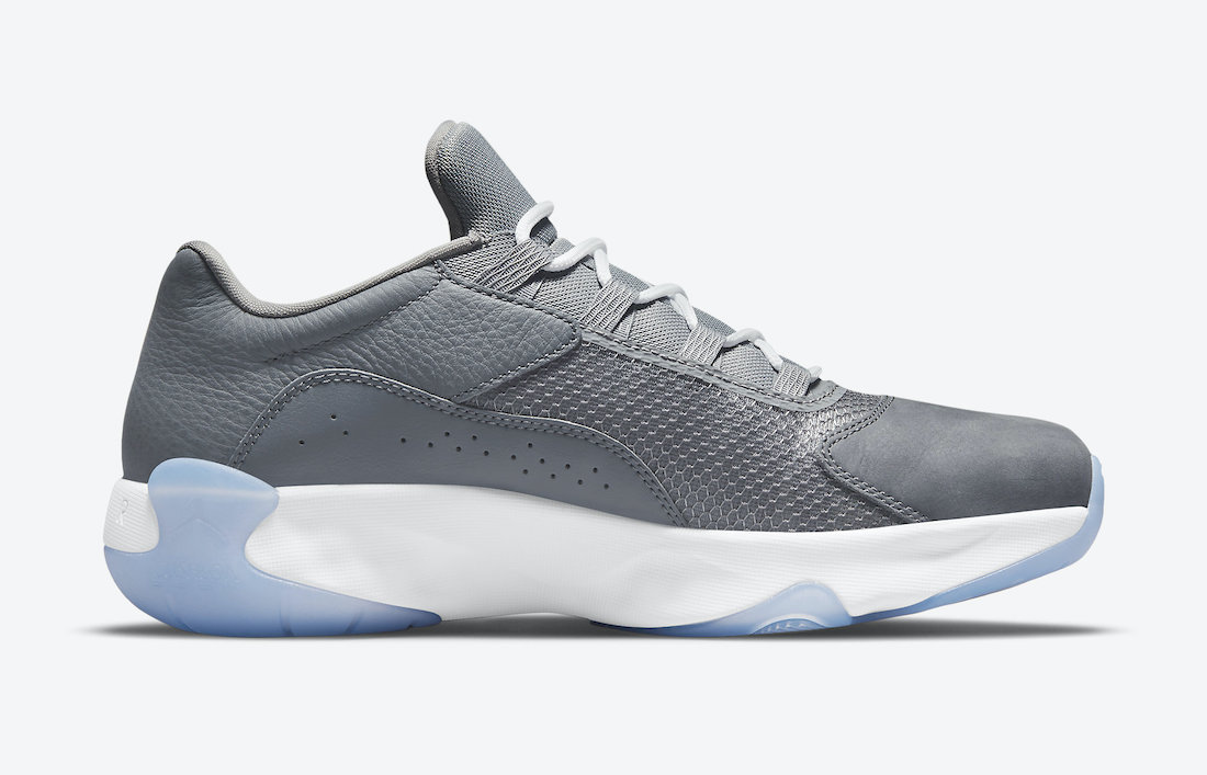 设计在 Air Jordan 11 Low 的基础上加入不小改动,鞋面由尼龙网眼,绒面革和荔枝皮拼接组合,经典的酷灰主题十分简约百搭。