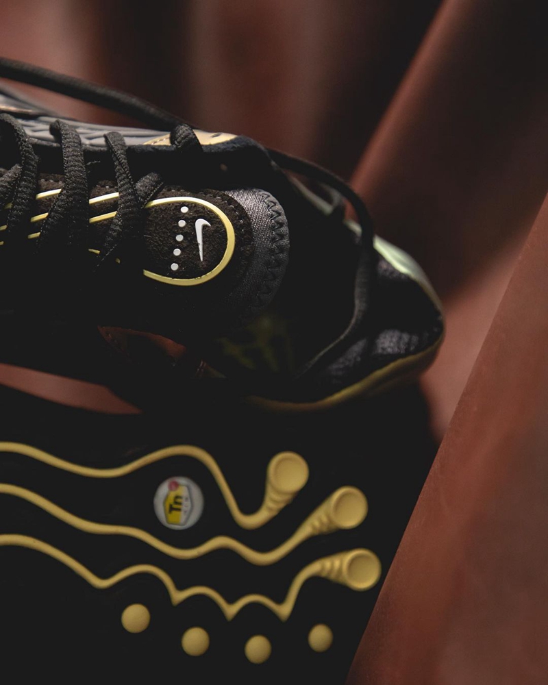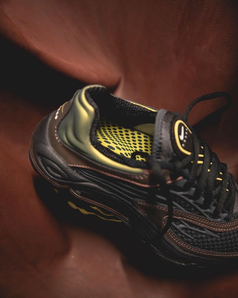 整双鞋采用黑色和古铜色为主调,虽然这双 Nike Air Tuned Max 被定位为一双复古跑鞋,但这科幻的气息就算现在看依然浓郁。