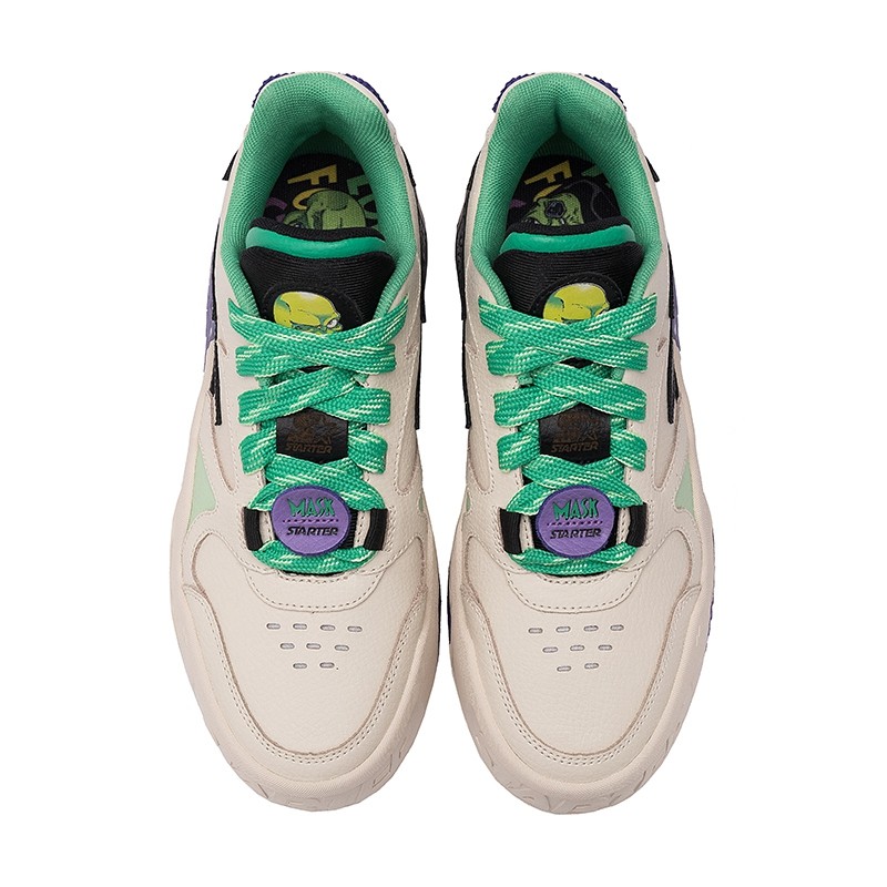 后跟点缀紫色 STARTER 字样,彰显鞋款身份。