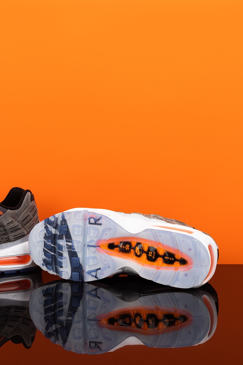 整双鞋的设计灵感源自于 Air Max 95 元年经典配色以及 Kim Jones 在伦敦的早期生活。