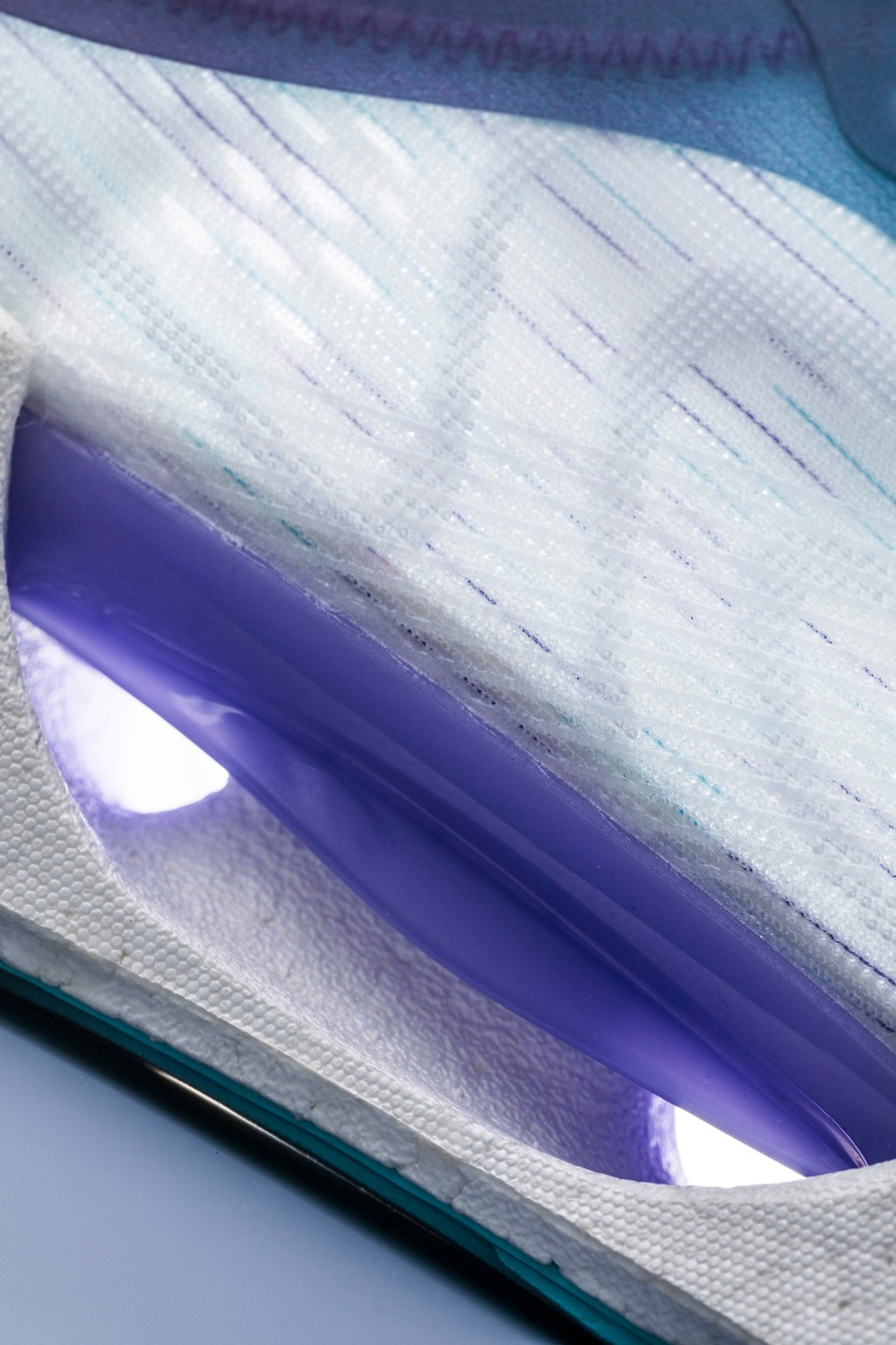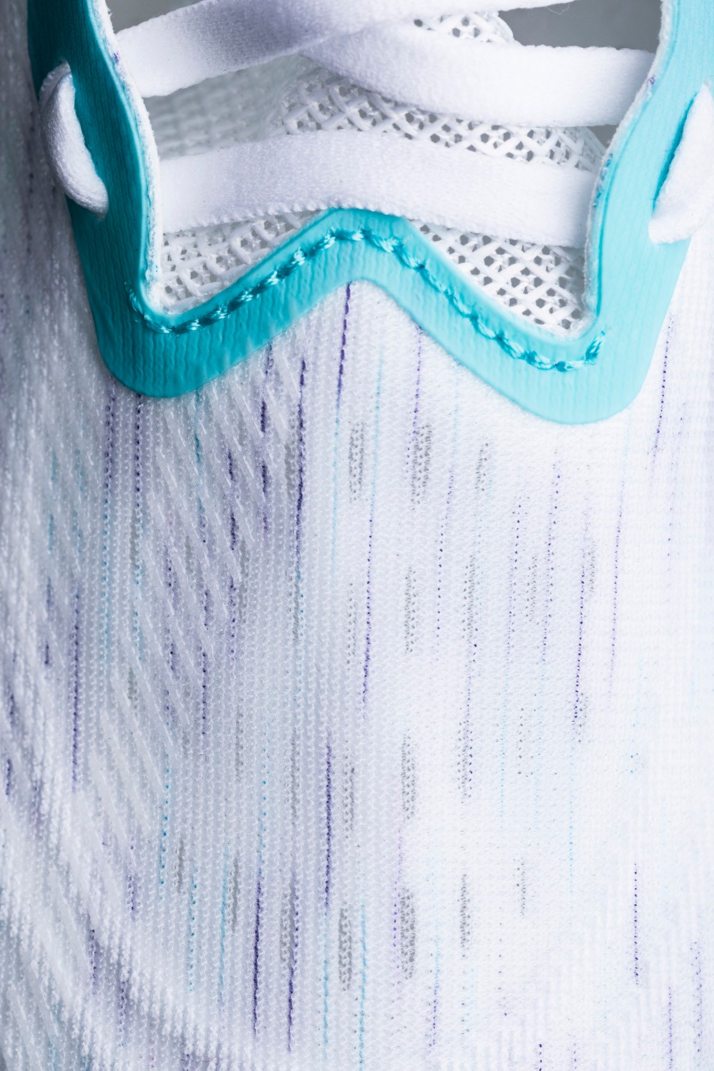 鞋面这次采用了纱架贾卡材质,就是透明纱线编织 + 大网眼内衬。
