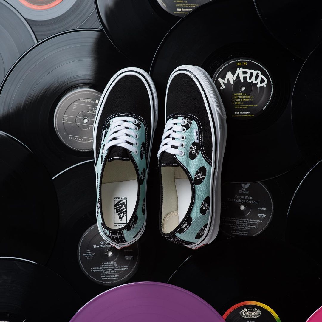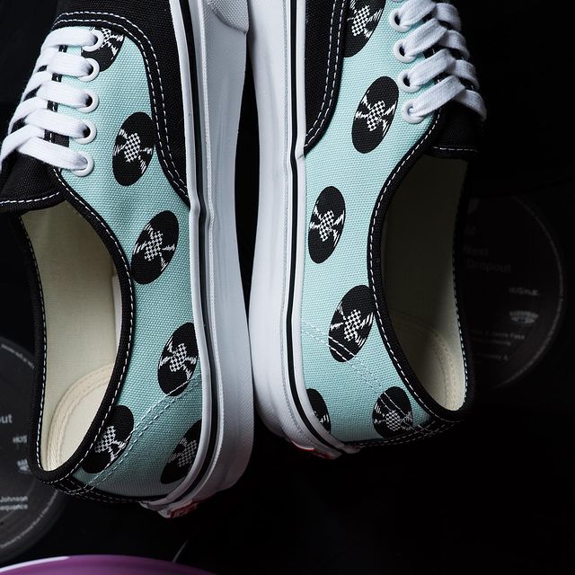 此次联名以 Authentic LX 为蓝本进行设计,三双鞋款均在鞋头使用黑色,其余鞋身分别采用粉、绿、白打造,并用黑胶唱片图案进行点缀。