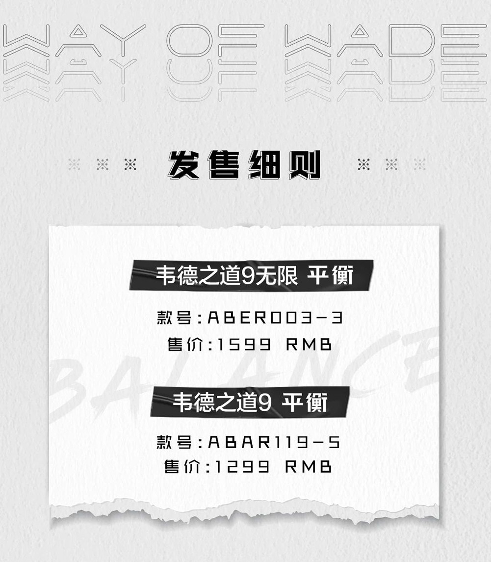 此次双方共将带来韦德之道 9 及韦德之道 9 无限,一黑一白百搭又大气。