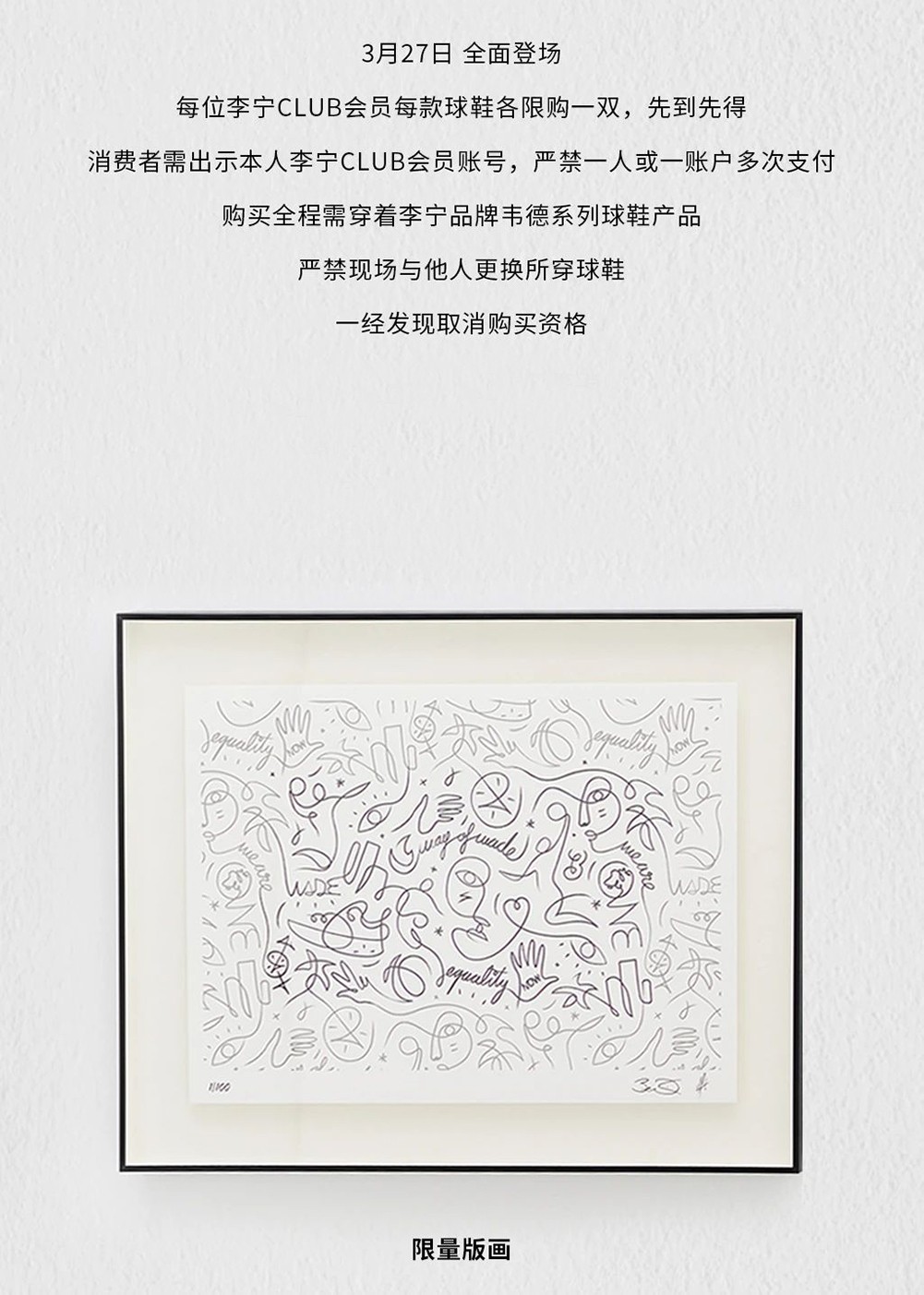 同时本次李宁还未粉丝准备了额外惊喜,每位会员还有机会抽签获得超限量艺术家 DTF 版画,极具收藏意义!