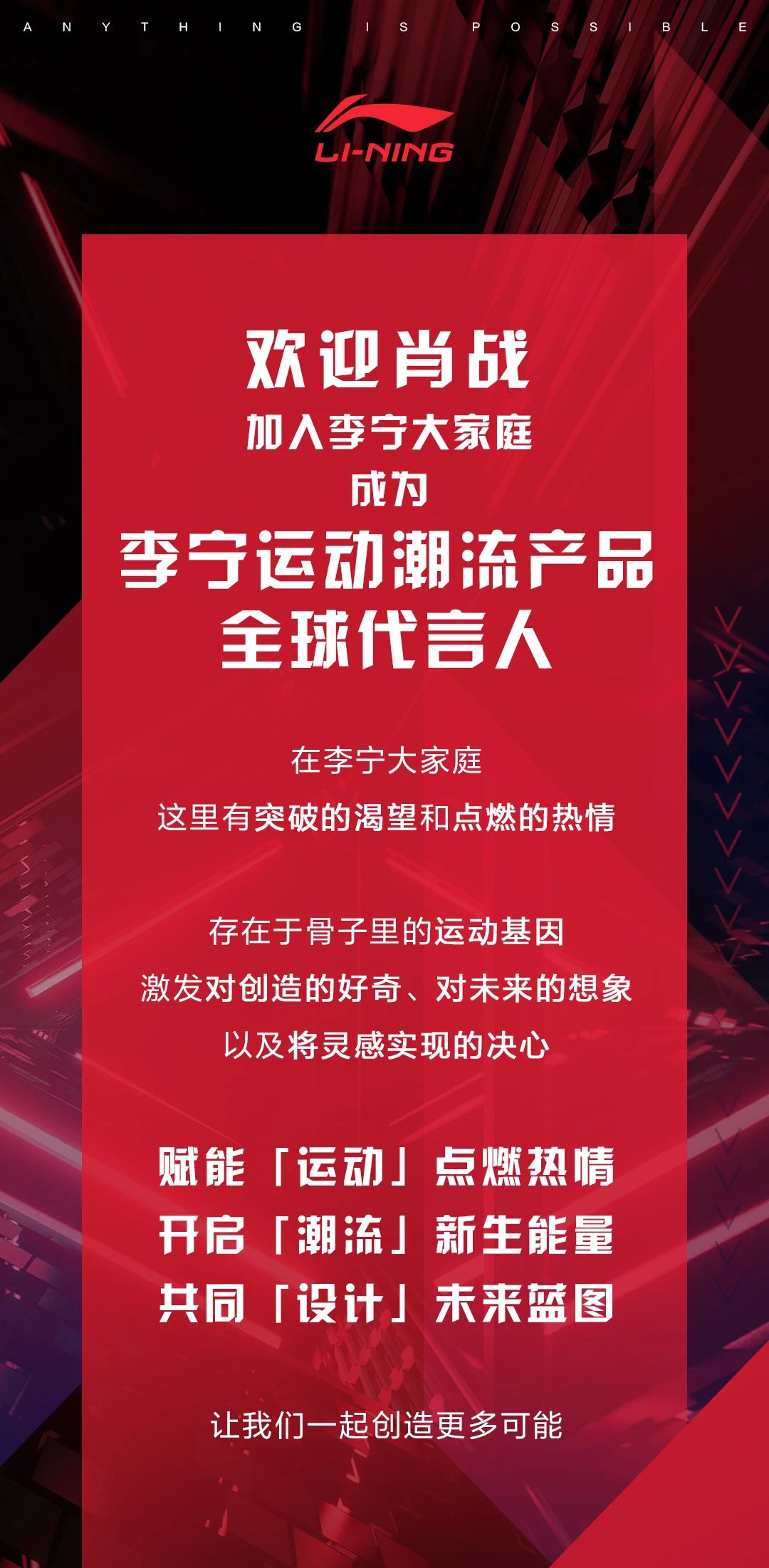 今天上午李宁官方正式宣布肖战成为李宁运动潮流产品全球代言人,瞬间成为微博热搜第一。