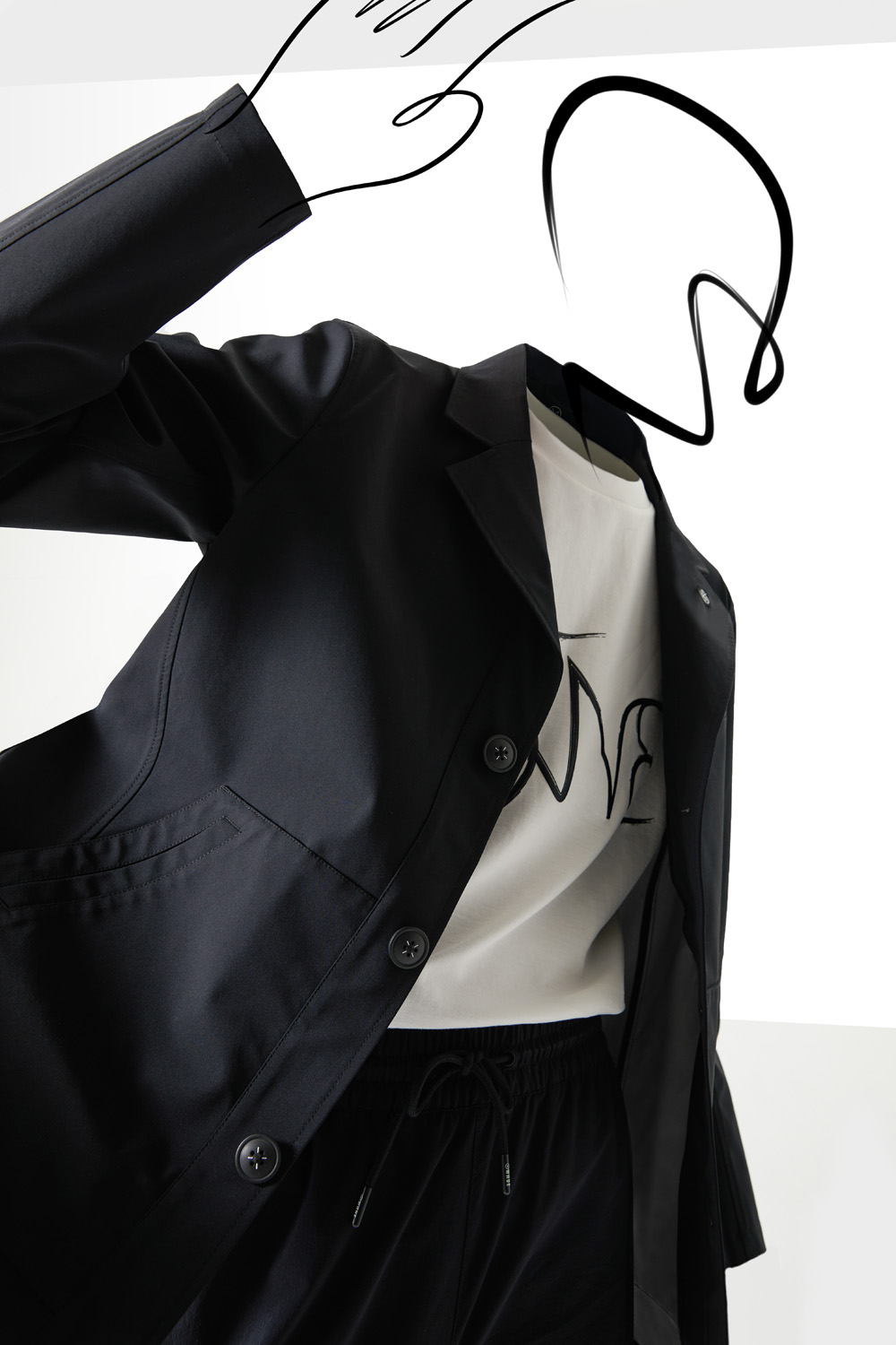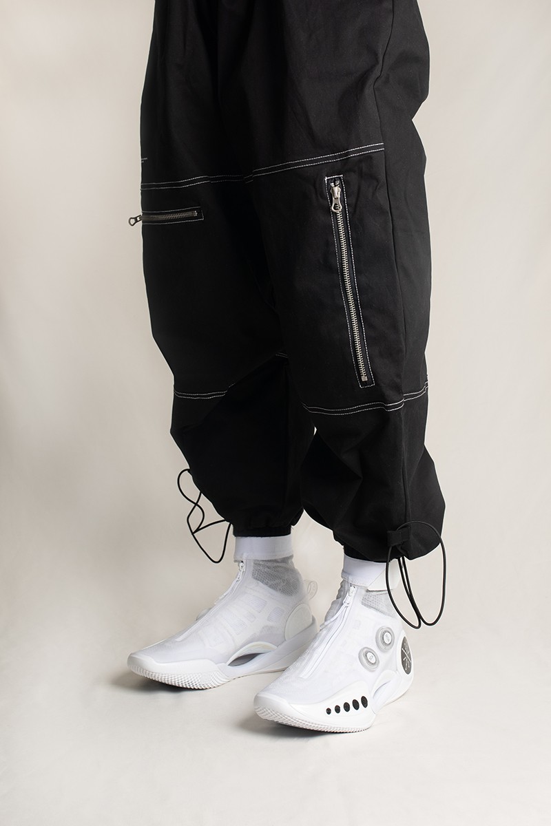 而作为联名款,细节的刻画就显得更为重要,大面积的白色在黑色点缀下,呈现出熟悉的黑白阴阳东方美学。