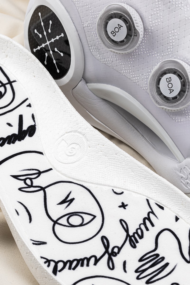 此外值得注意的是,鞋垫设计印有艺术家 DFT 联名画作,水墨线条勾勒极具艺术气质。