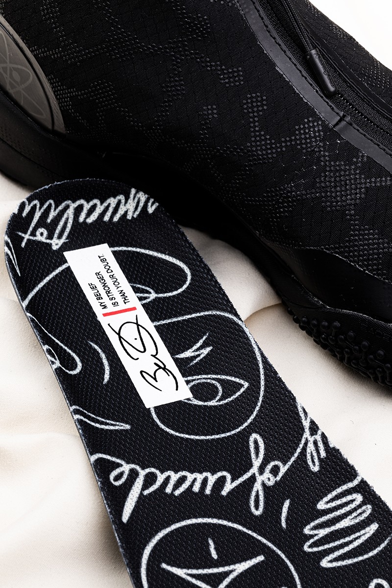 黑色主调的鞋垫同样以联名画作呈现,黑白分明艺术感爆棚。