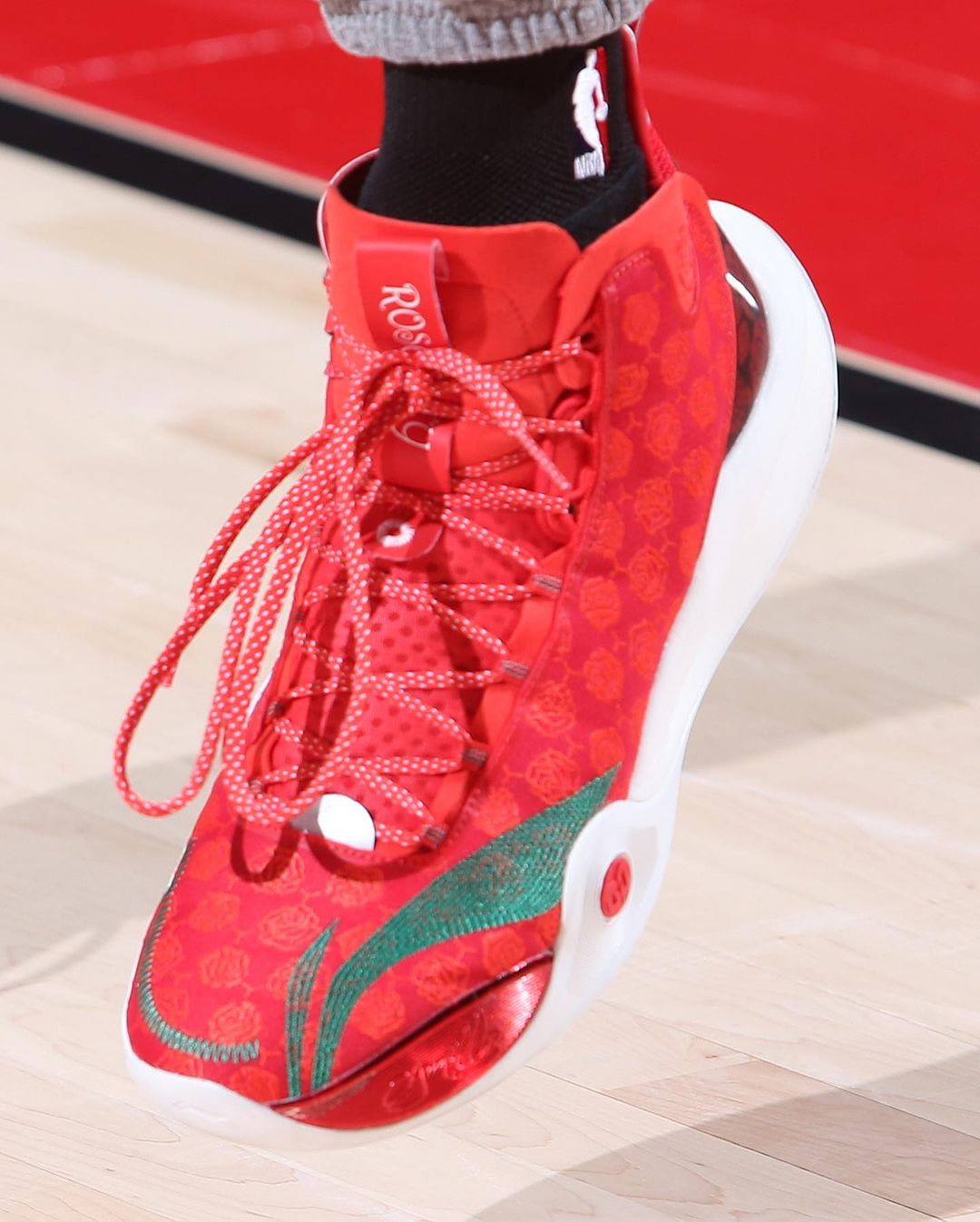 配色方面一袭亮眼的大红色,呼应开拓者队主场配色,同时透过左脚鞋舌上的 ROSE 字样,彰显玫瑰之城的高贵身份。