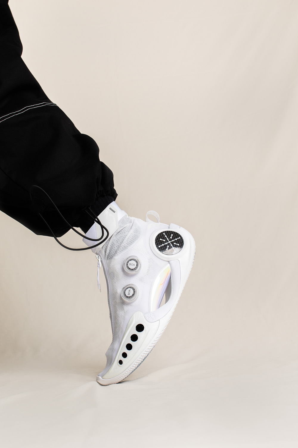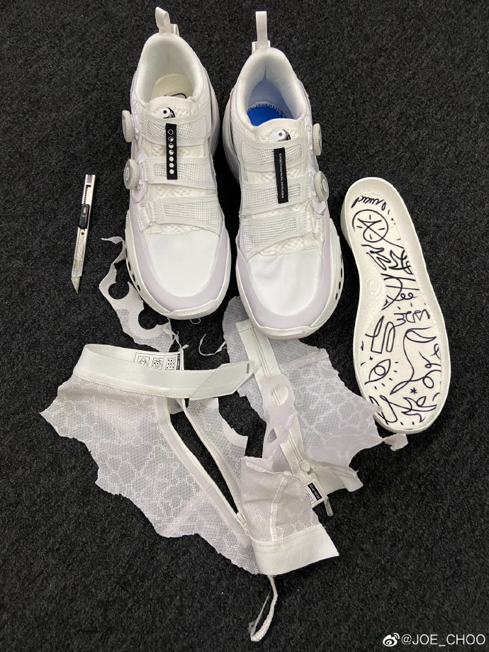 大周将原本的拉连鞋面减掉之后,露出内层鞋面,加之纯白色调的清爽气氛,视觉效果还真挺好看。