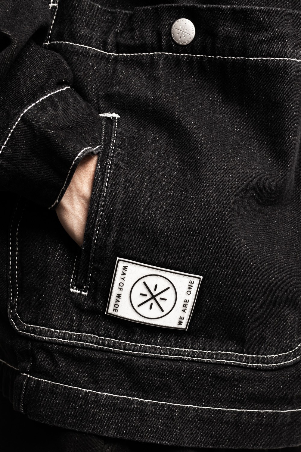 硬挺的黑色夹克上身之后相当有型,大面积白色图案的点缀带来不错的冲击效果。