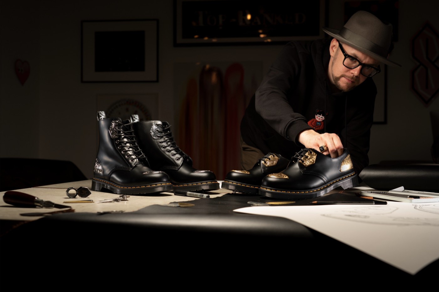 近日 Dr. Martens 联手雕刻大师 KING NERD 推出两款马丁靴。