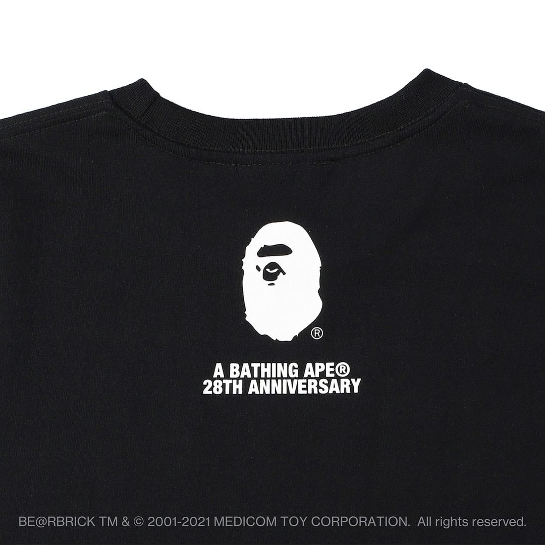 短袖背面印有 BAPE 猿人 Logo 和 28 周年纪念字样,细节感满满。
