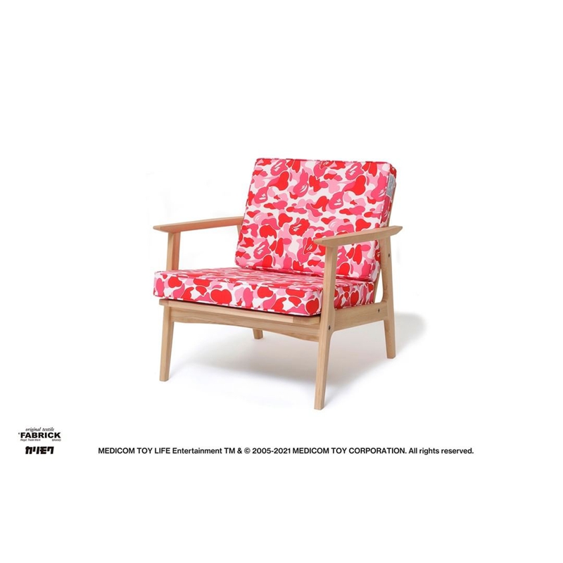 此次 BAPE 的家具系列共推出了单人、双人和三人沙发,都以经典的粉色迷彩为主体打造,搭配上木质框架,视觉效果十分吸睛,将「猛男」气息直接拉满。
