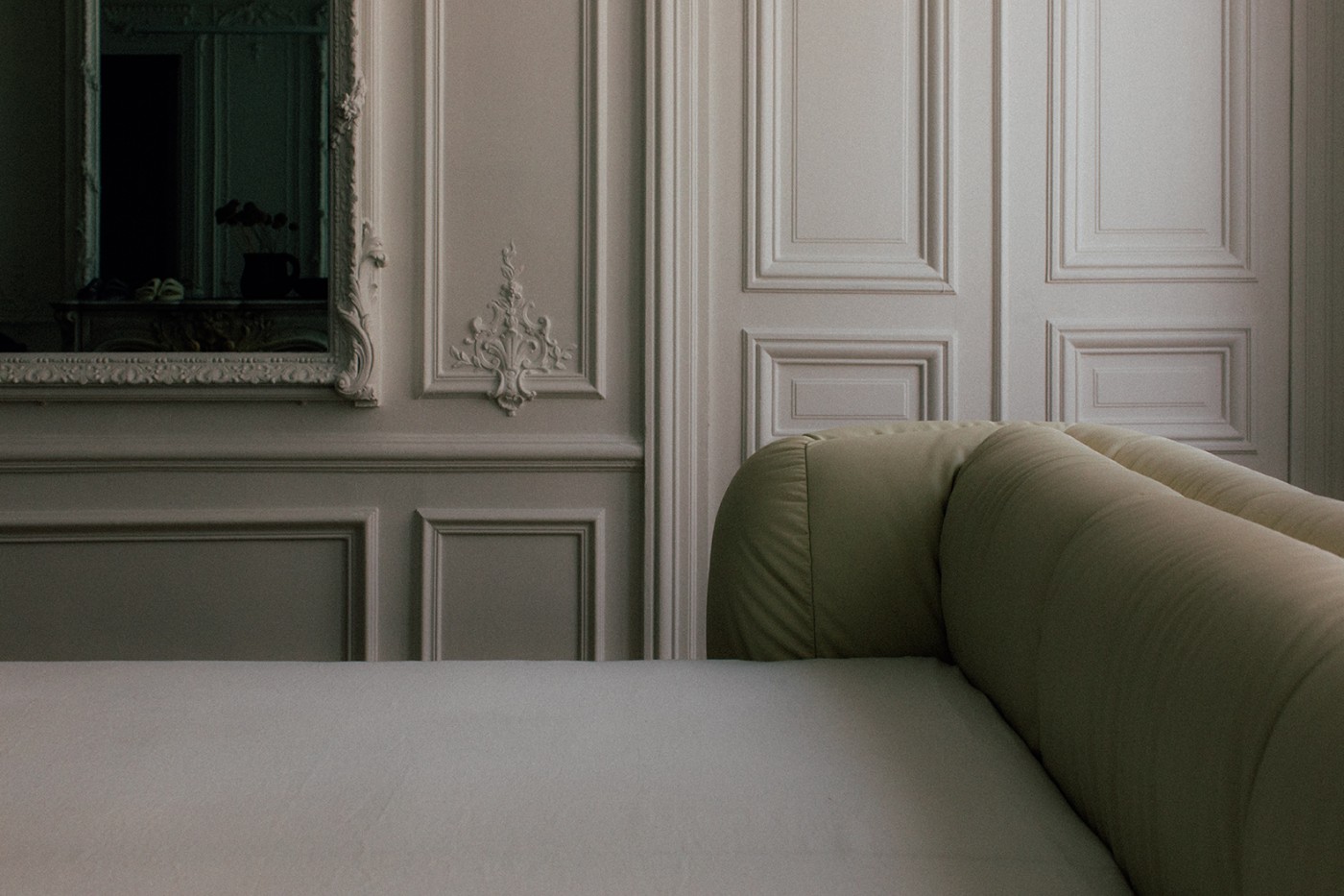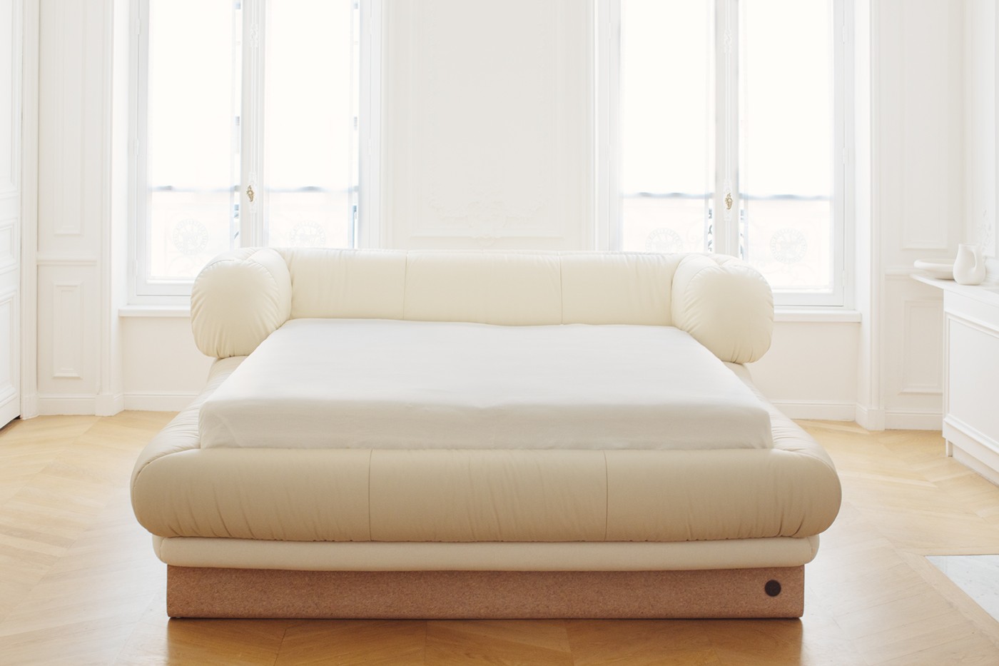 蓬松的帆布和真皮内饰创造了一种柔软的氛围。床头板和顶面采用了奶油色皮革装饰,充分体现了它的自然质感。