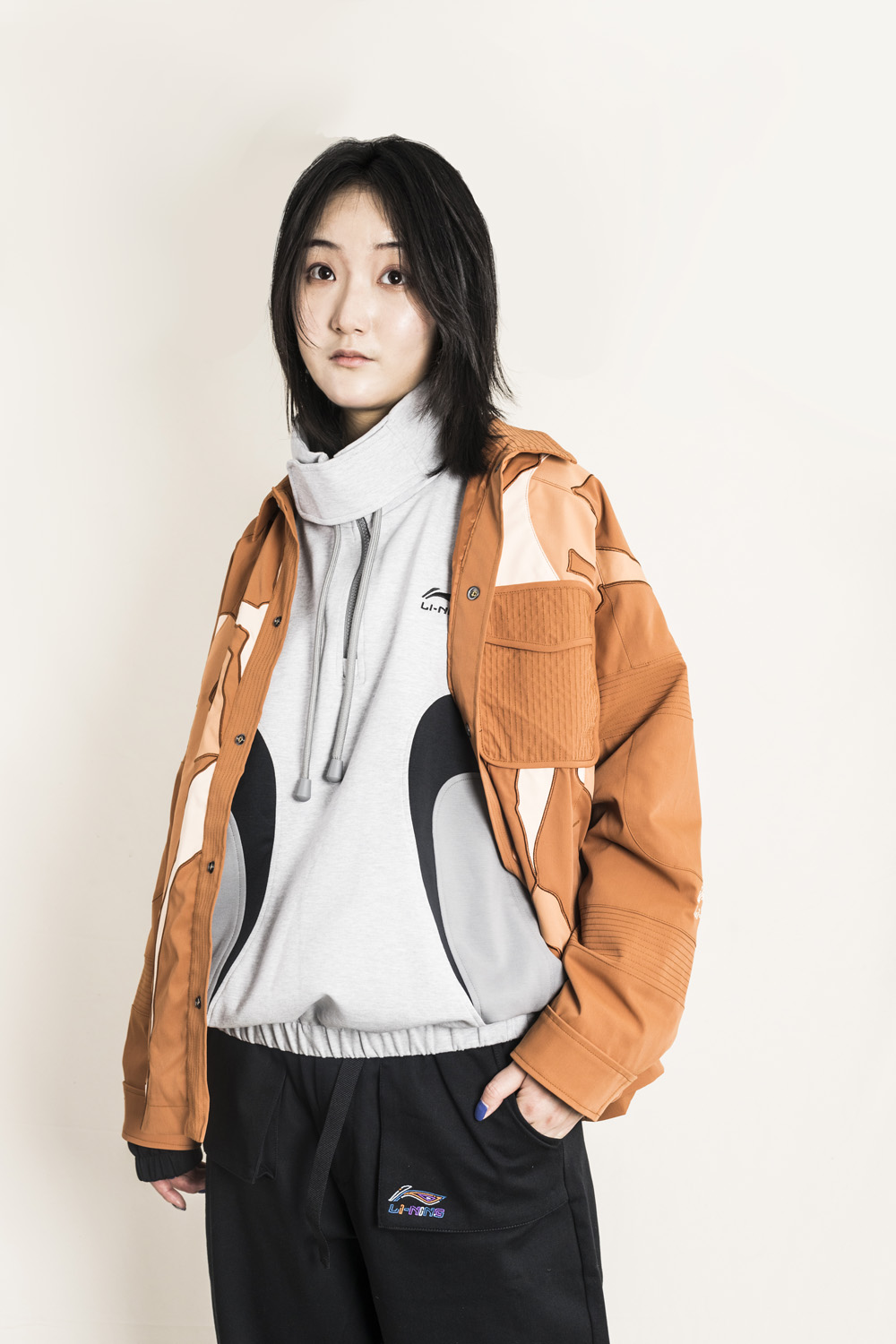 小编选择了琥珀棕色的李宁秀款夹克进行搭配,整体呈现出的视觉感受十分融洽。