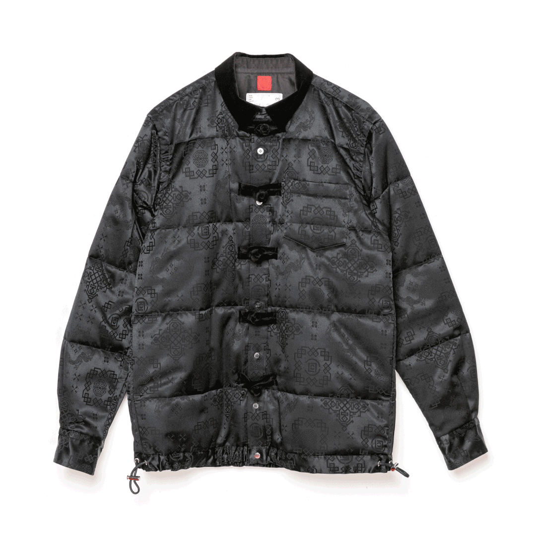 整个联名系列包含了男、女两款夹克,运用 CLOT 经典「丝绸」面料,以 sacai 标志性衬衫设计为原型,带来耳目一新的视觉效果。
