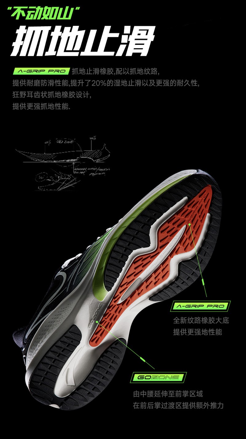 中底则加持安踏最新的虫洞缓震科技,根据安踏实验室测试的结果,无论柔软舒适性还是跑步缓震性,都具有十分高的水准。