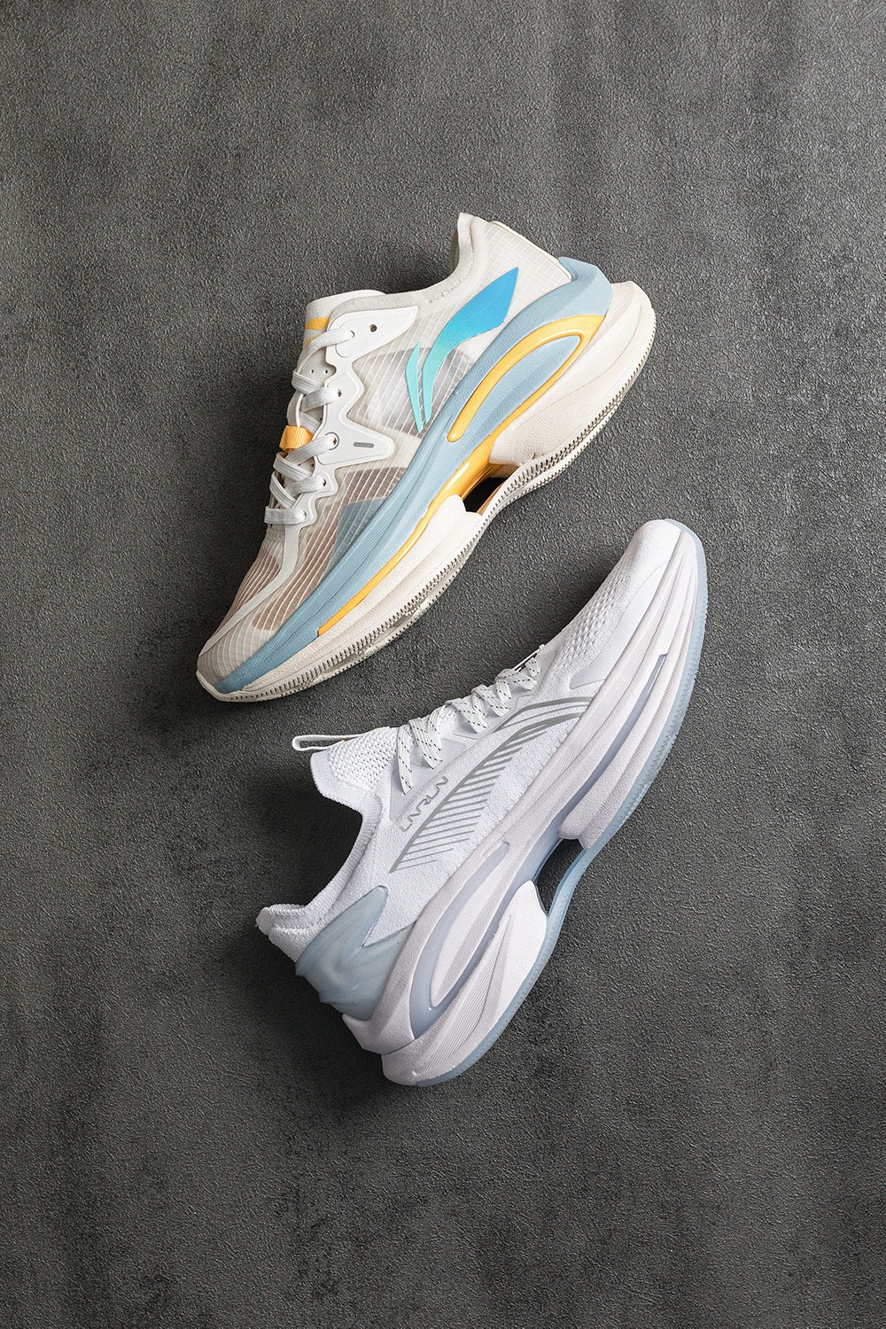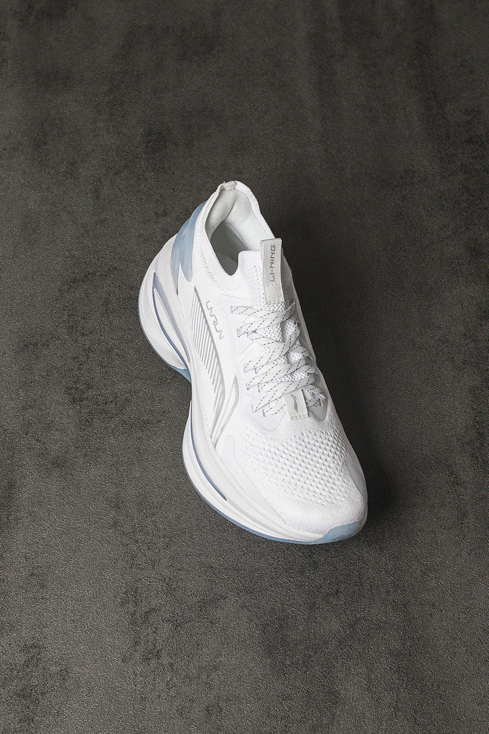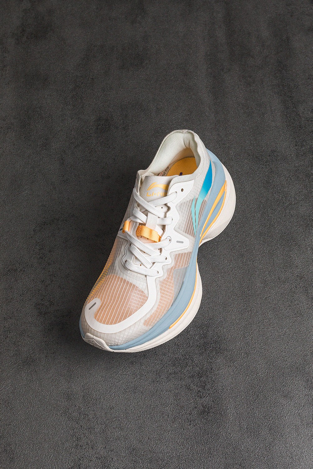 侧身巨大的李宁 Logo 贯穿鞋身,线条的勾勒呼应流线型鞋身的同时,突出了整体的速度感。