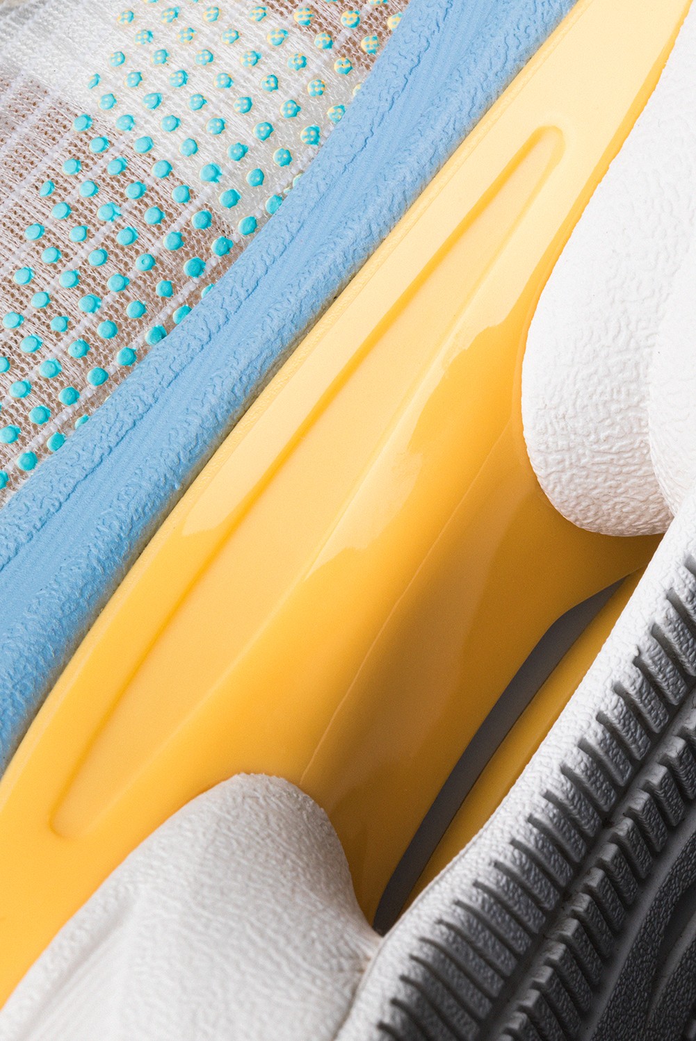 相信眼尖的小伙伴已经看出来了,整双鞋的中底、外底结构独特,同时又巧妙地衔接在一起。