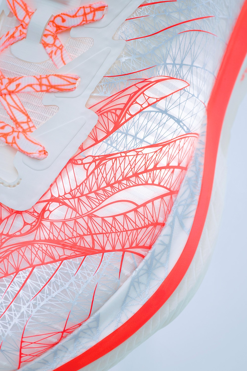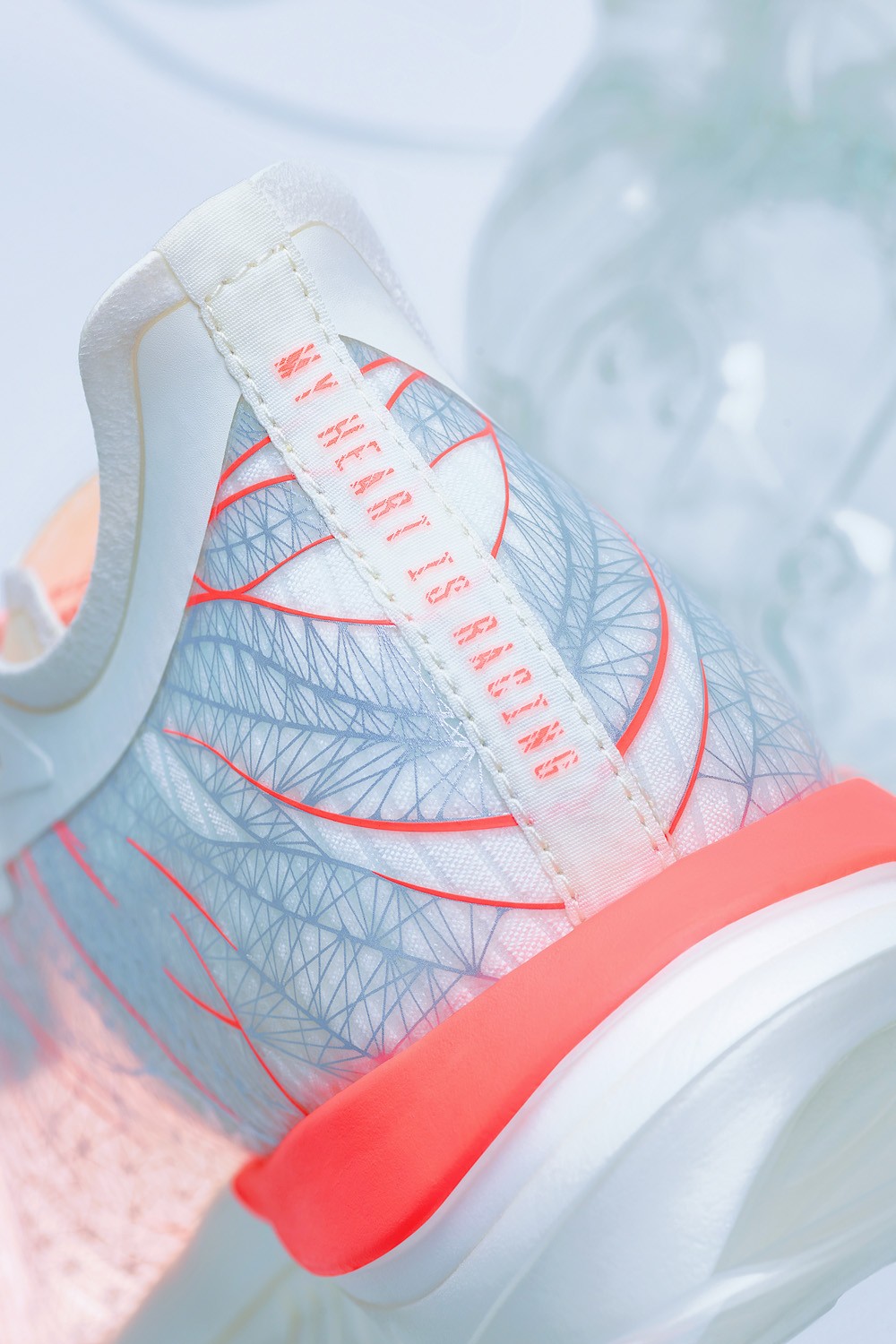 整个鞋面的纹理和超大安踏 Logo,都是用类似血管的图案交织而成。