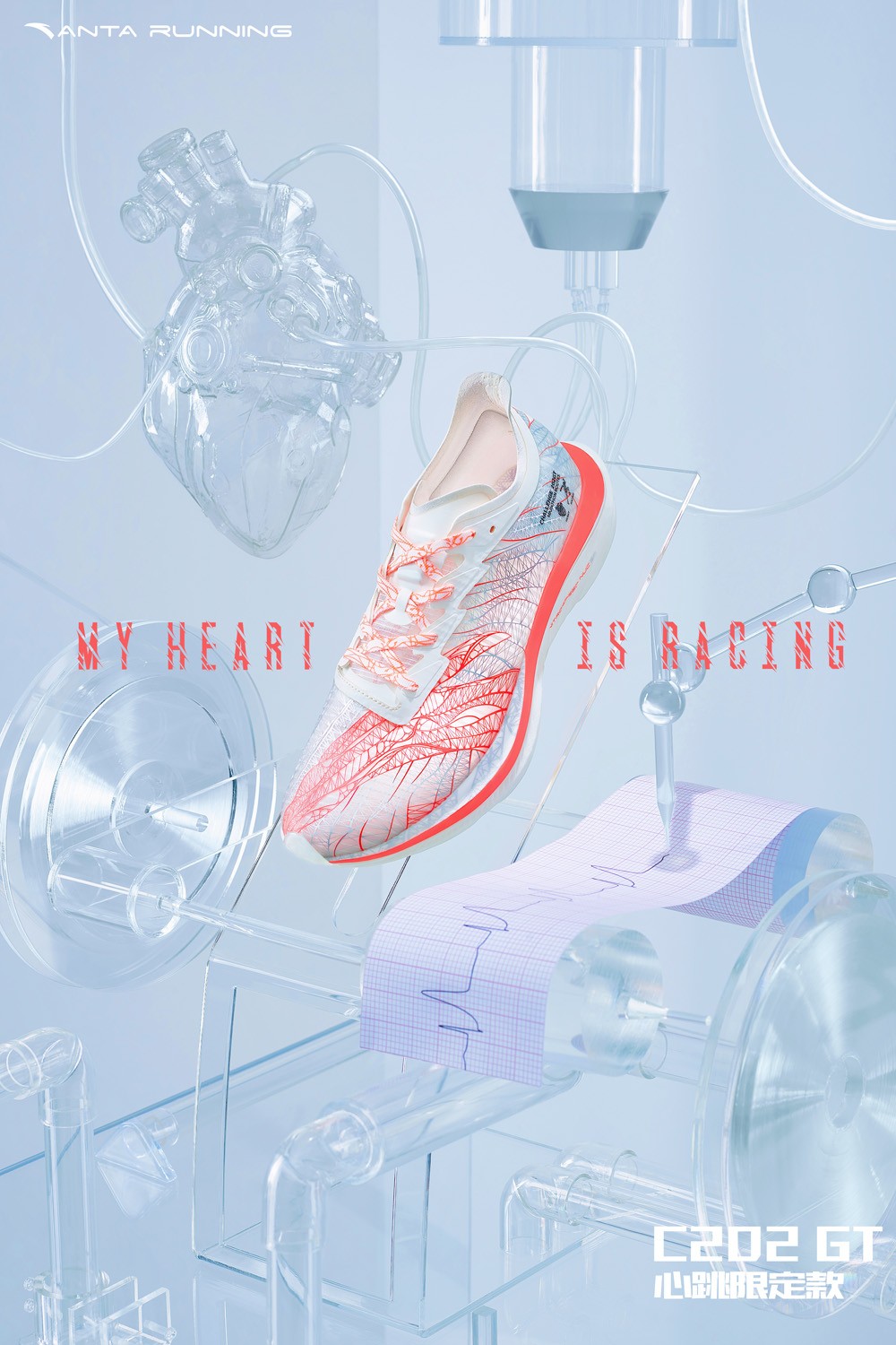 4 月 13 日将于上海举办线下发售活动, 活动将以 #My Heart Is Racing# 为主题,抢先发售 22 双 C202 GT 故事款跑鞋。