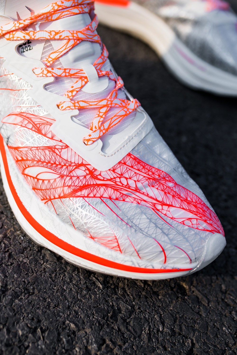 后跟上的 “My Heart Is Racing” 就是这双鞋配色主题,表现出马拉松跑者们挑战极限的激情与精神。