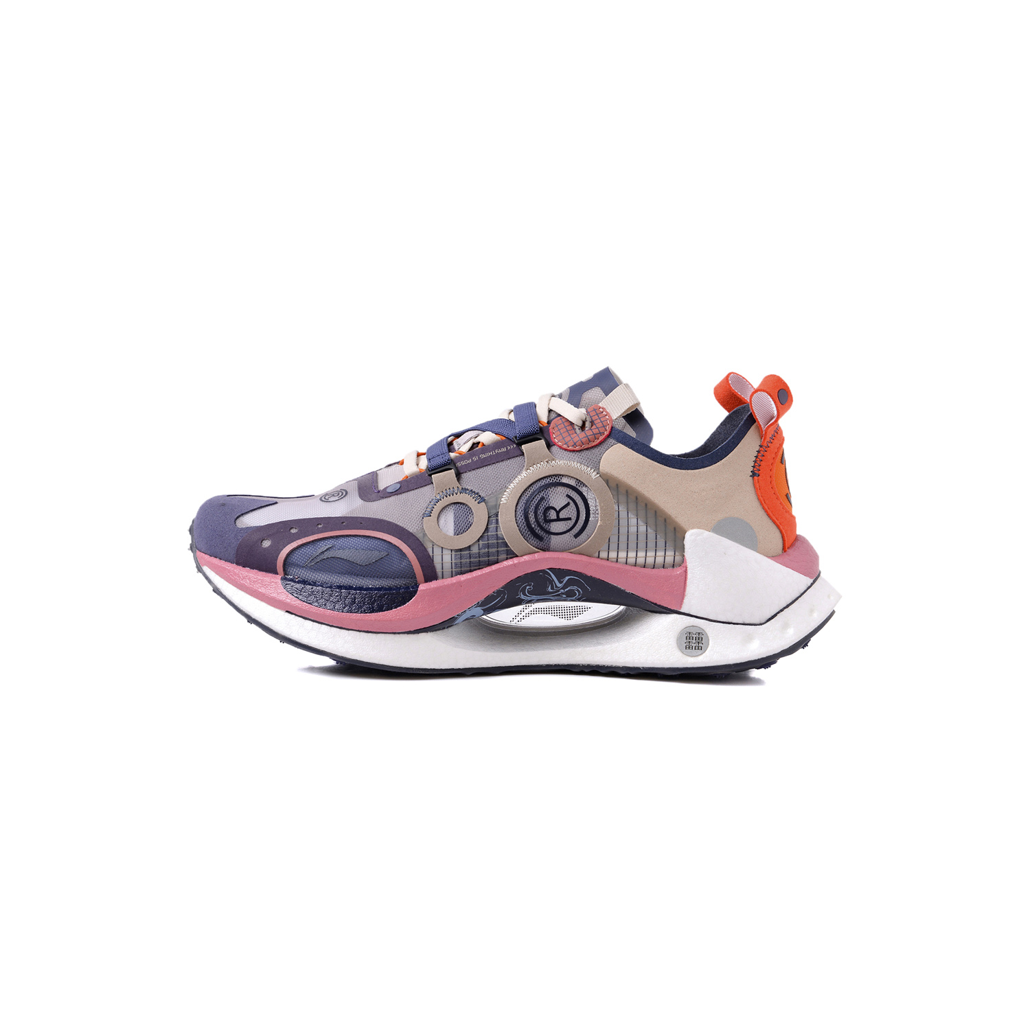 鞋面由植绒、纱线、网布材质组成,层叠结构分明,保证透气性与视觉效果。