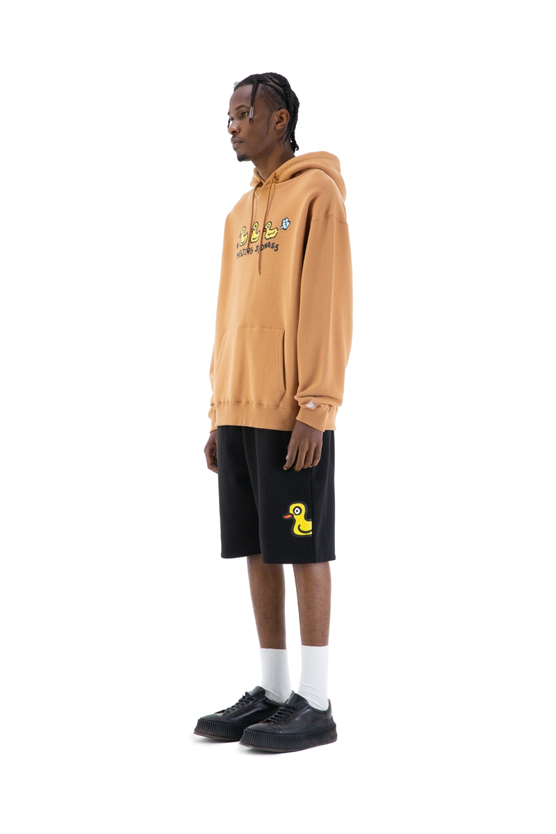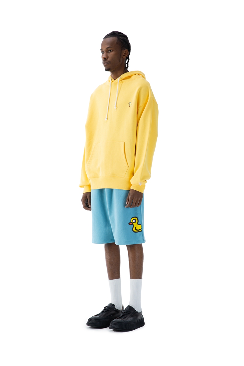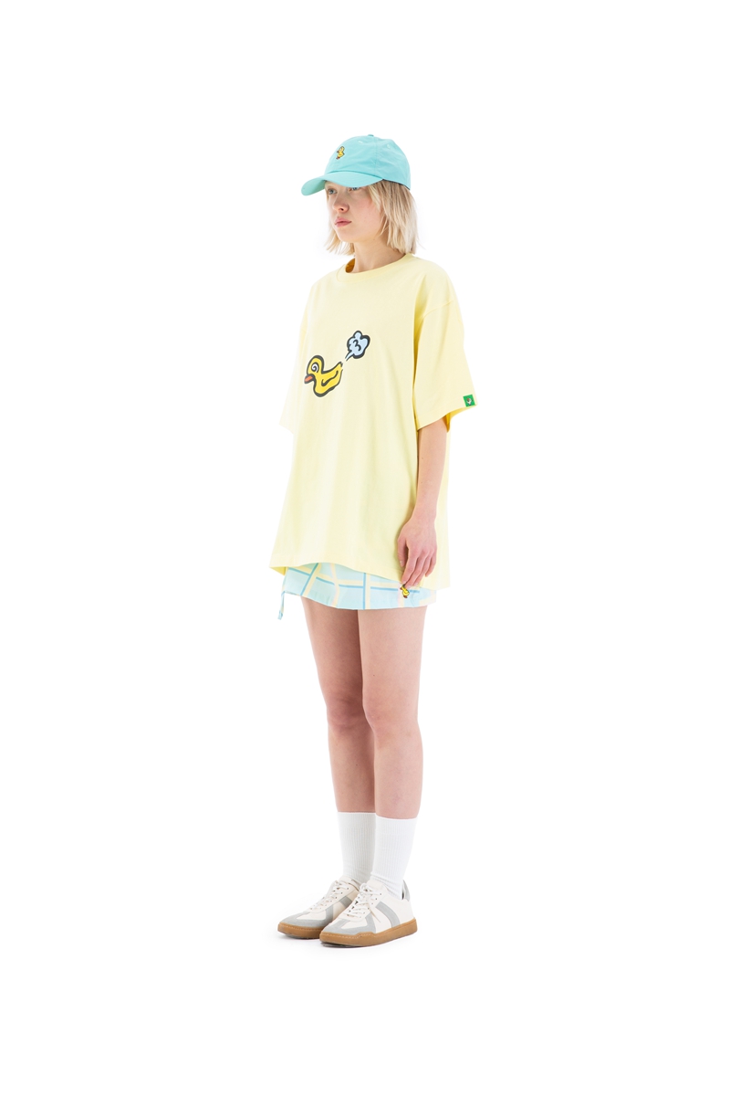 整体设计依旧沿用了鲜艳的马卡龙色调,正面印有充满童趣的漏气鸭图样,色彩的碰撞,童趣的涂鸦等呈现。