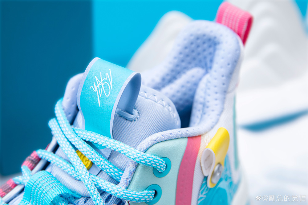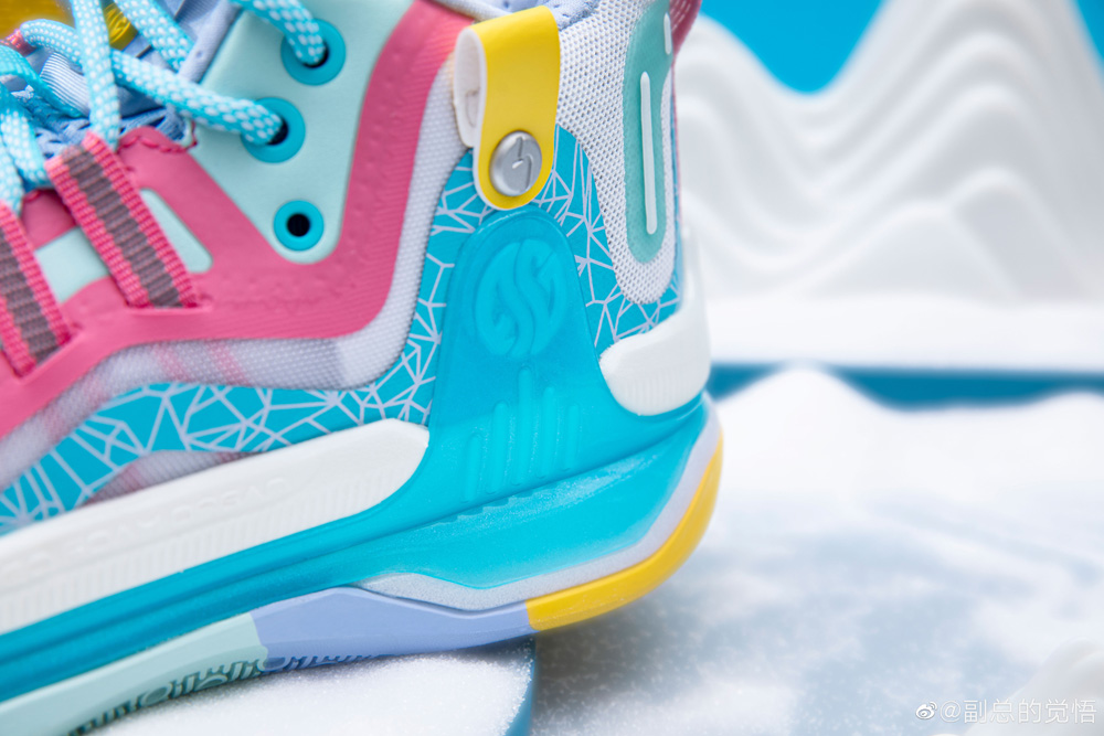 伴随着全新版本的曝光,361°的副总加菲还同时曝光了一款「彩虹冰山」的全新配色。