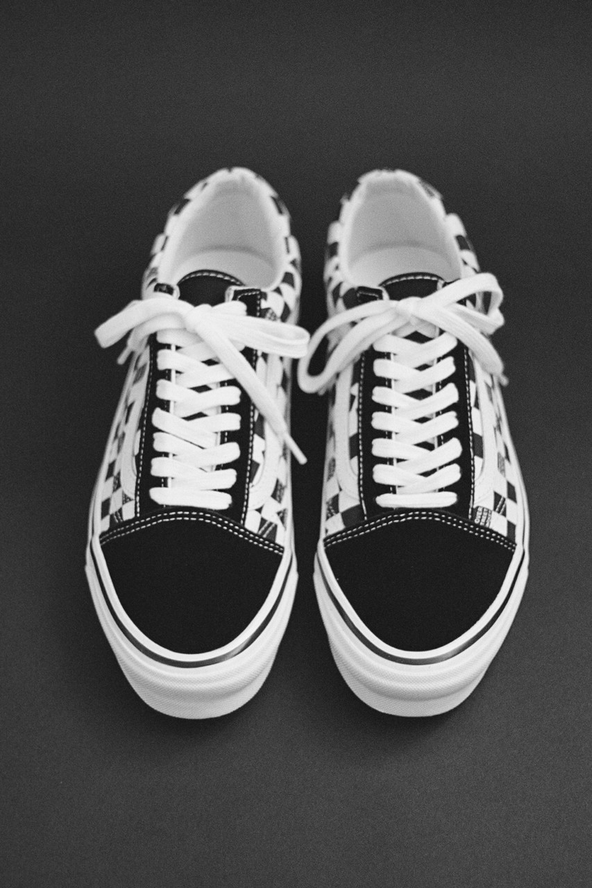 Old Skool 采用黑色麂皮打造鞋头、后跟以及鞋带孔的部分。棋盘格应用在了鞋身两侧,白色皮质的 Vans Logo 缝制其上,格调满满。