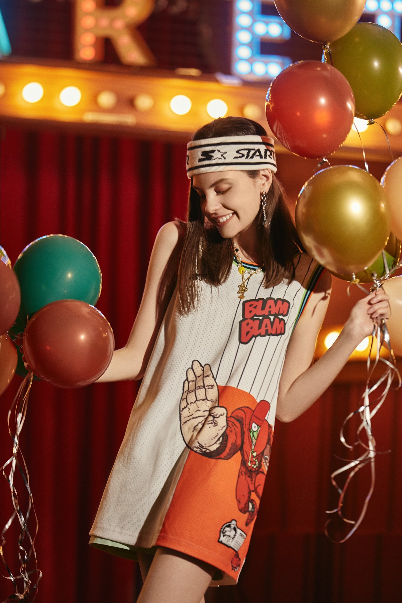 背心网眼面料透气性和排汗功能都十分优秀,并结合 THE MASK 的滑稽形象和明亮色彩搭配,极具街头风格。