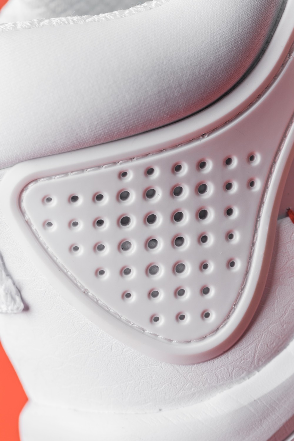 鞋帮处不仅使用了厚实的海绵材质,还有以音速 7 为灵感的冲孔式 TPU,增强科技感同时又可以更好保护住你的脚踝。