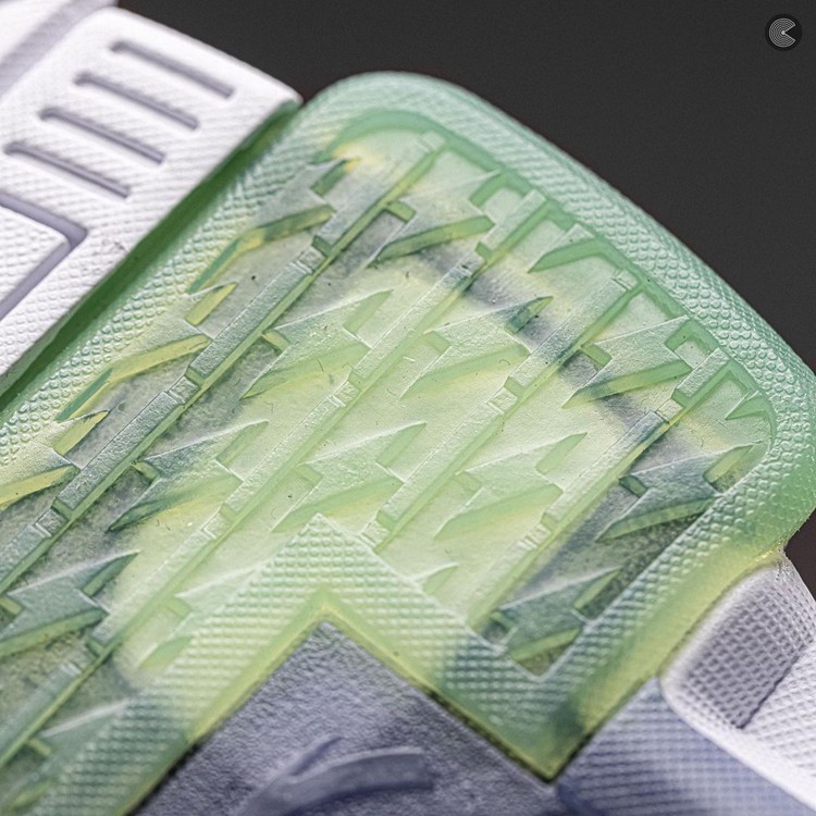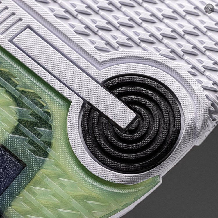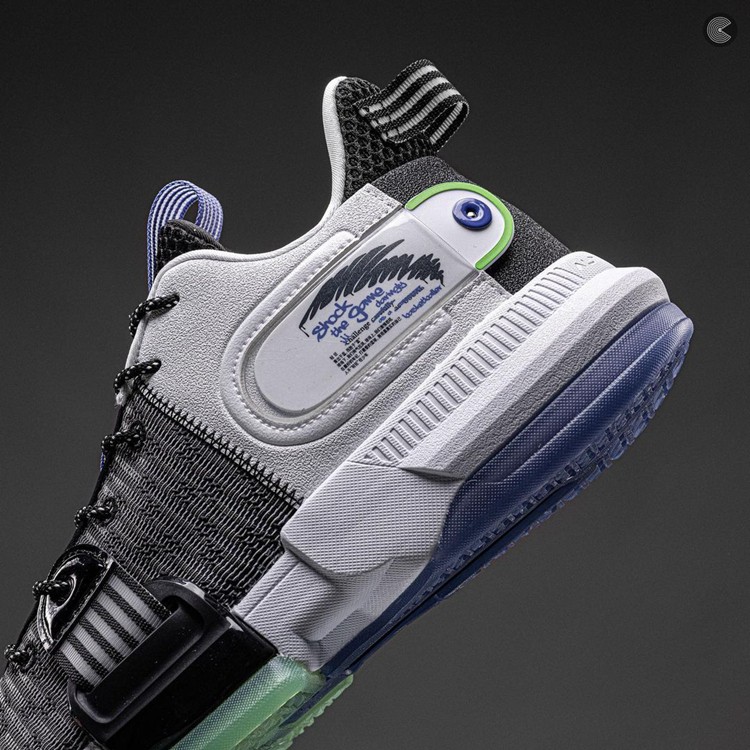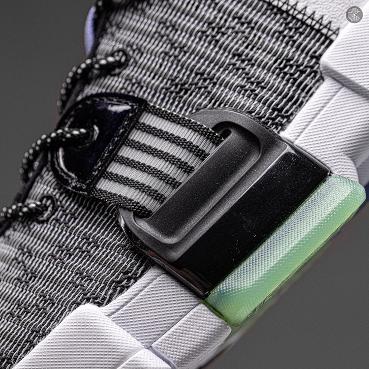 整双鞋白黑灰三色作为主打色调,并在其中加入淡绿色的点缀,低调中不失亮眼细节。