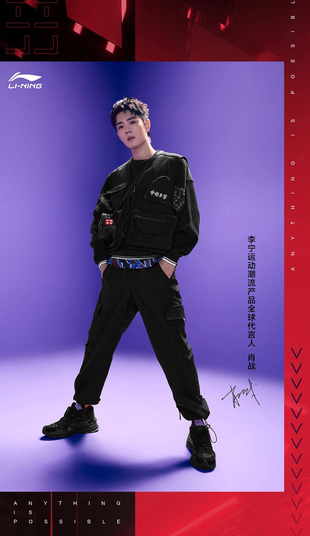 官宣图中,肖战上身的机能工装风马甲、刺绣卫衣和工装长裤以及脚下的纯黑中国李宁烈骏 ACE2 均在短时间内售罄!