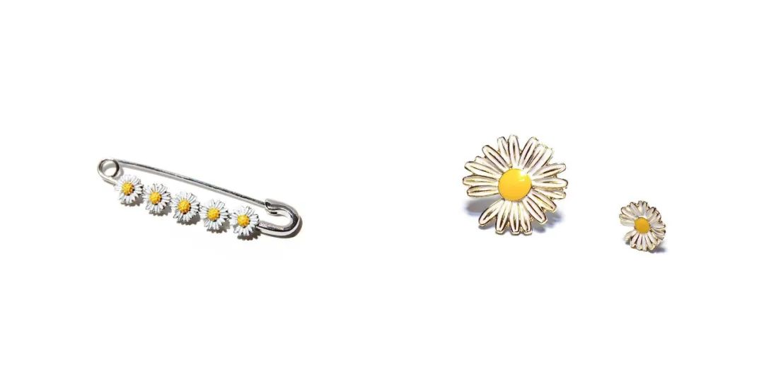 两个不同设计的雏菊别针,无论是颜值还是质感,相信将成为抢手的搭配单品。